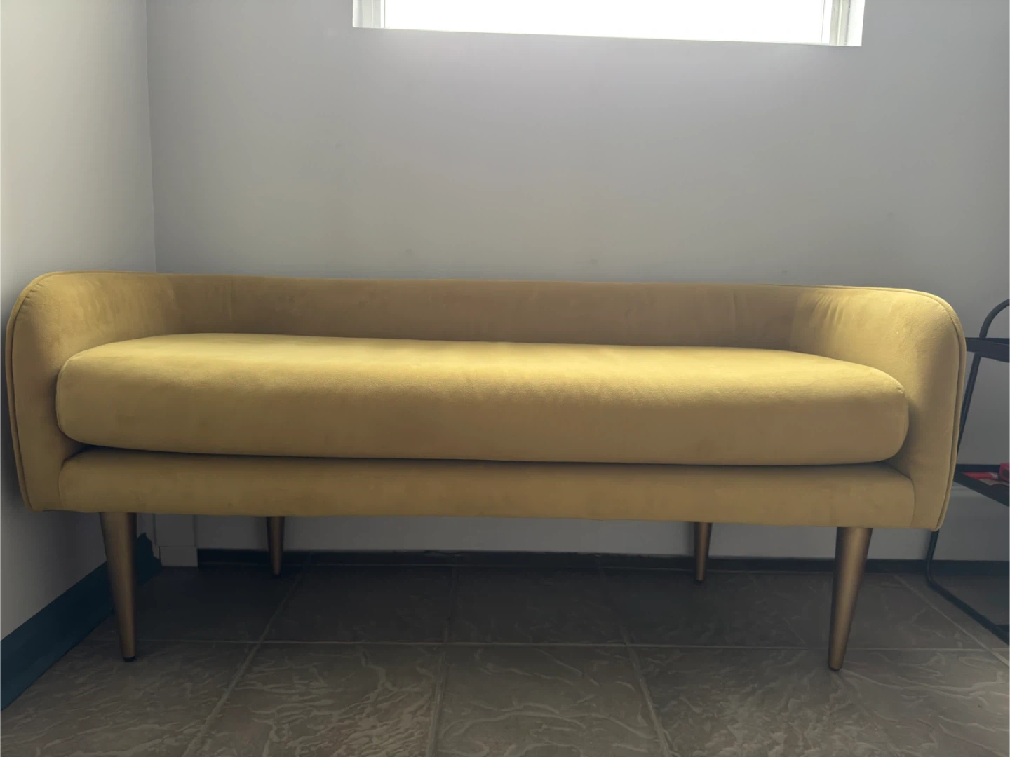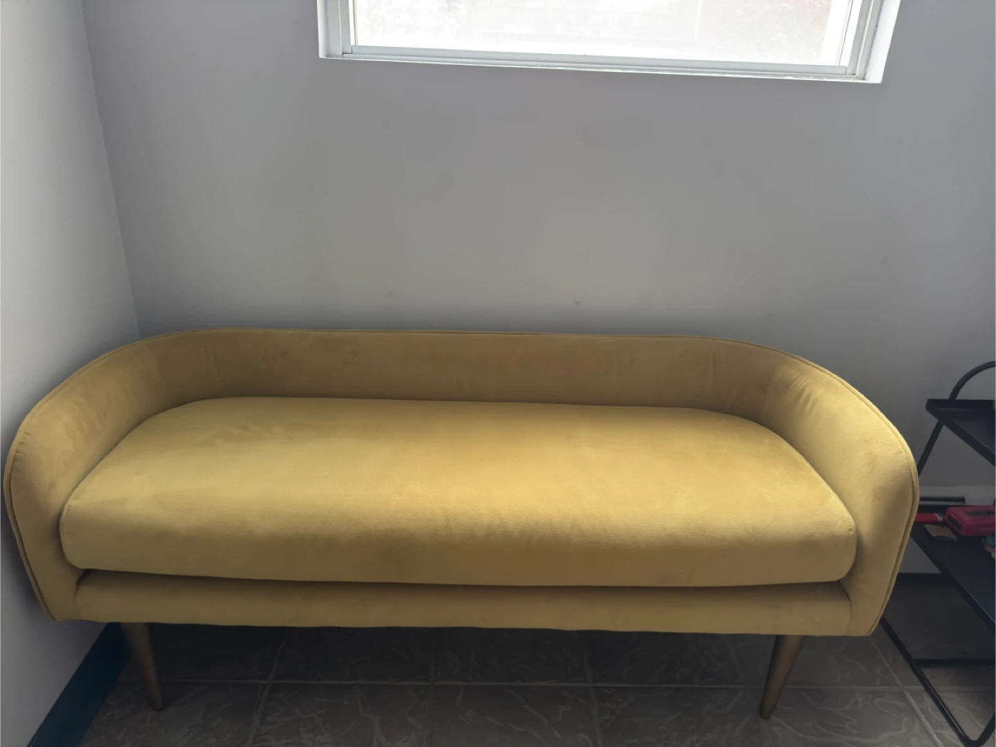 0Selling a cute vintage mustard-yellow greenish velvet loveseat! It's in very good condition and would look great in any living room or bedroom. The material is soft and comfortable, perfect for lounging. It's a stylish and cozy piece of furniture! Seating cushion has a zipper so it can be easily removed and washed.