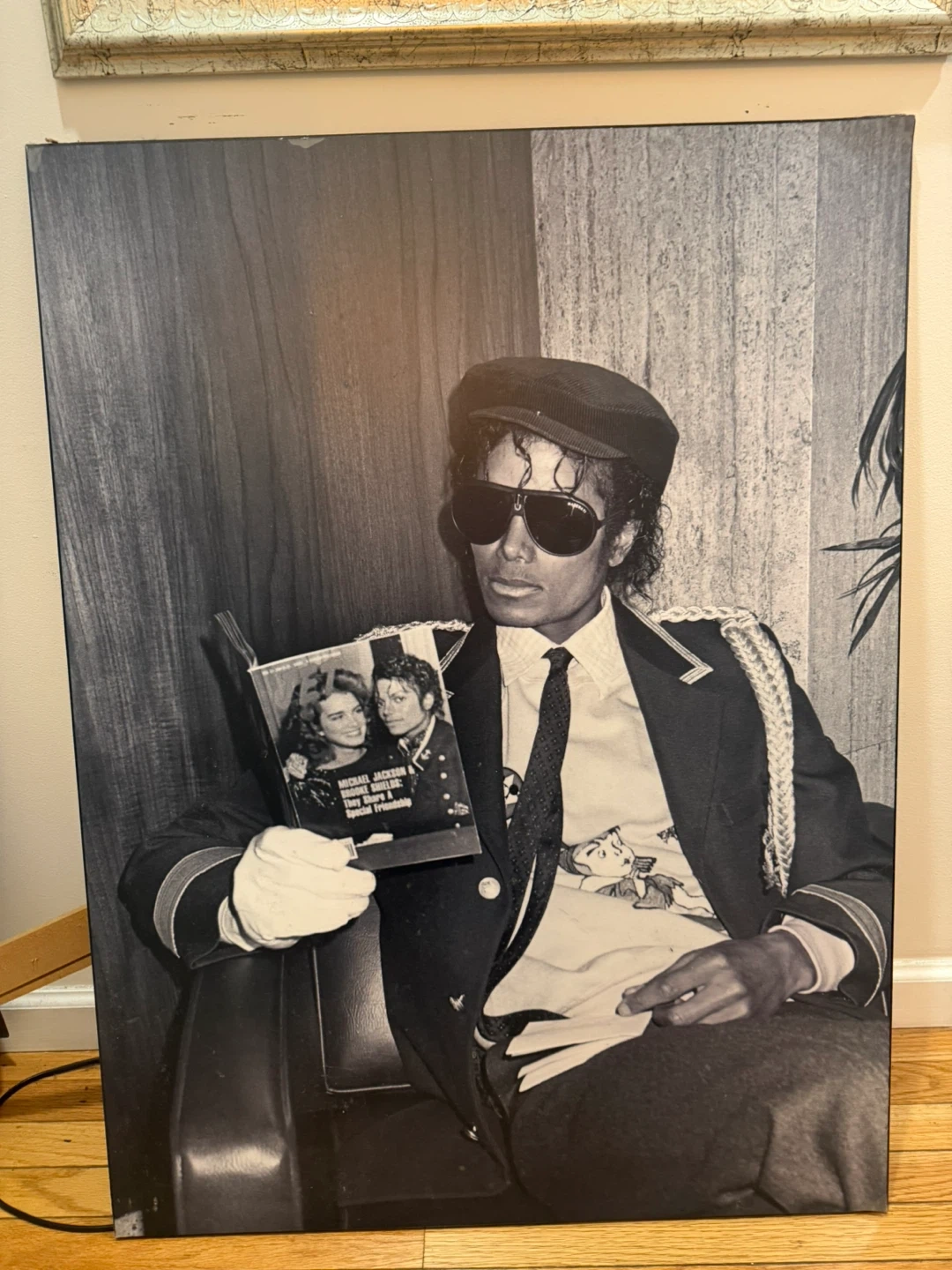 38Great Wall art of MJ in his glory days ! 30x39”. Slight wear and tear on the upper corners and the wall mount is a simple fix.