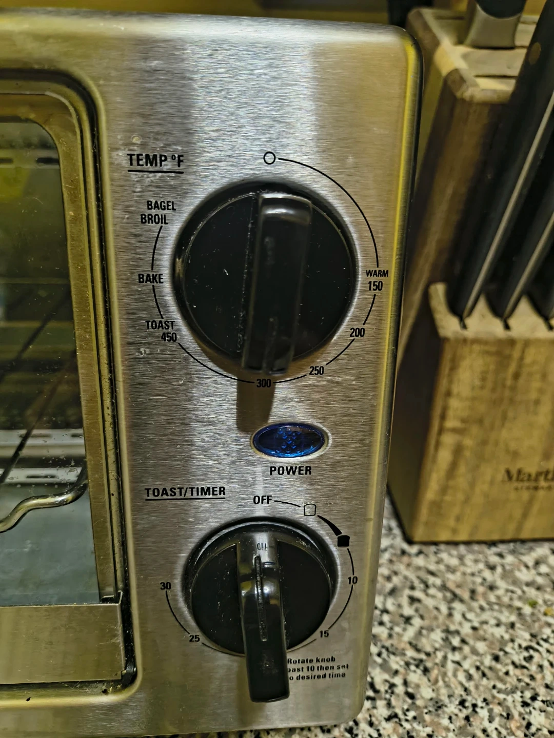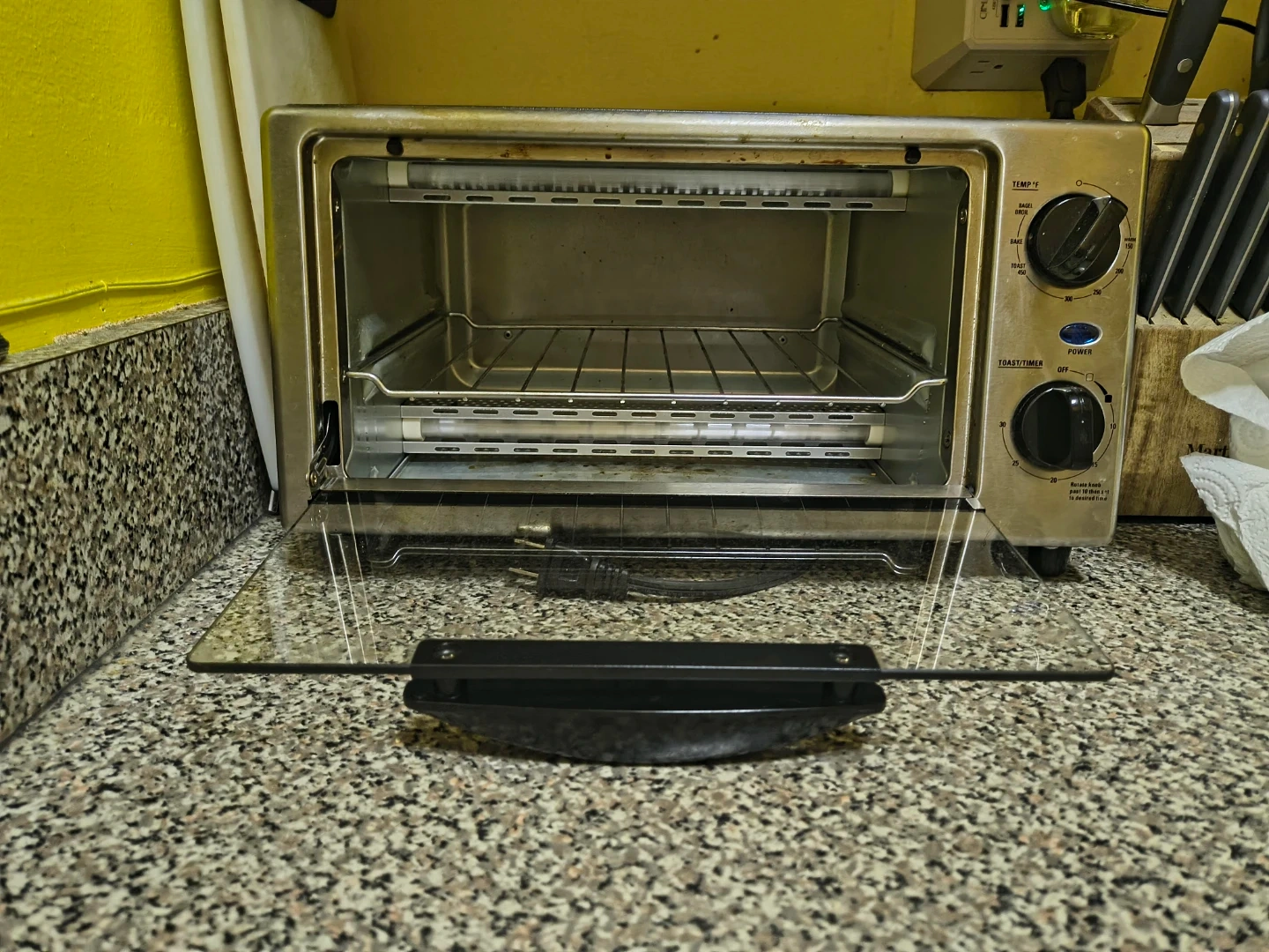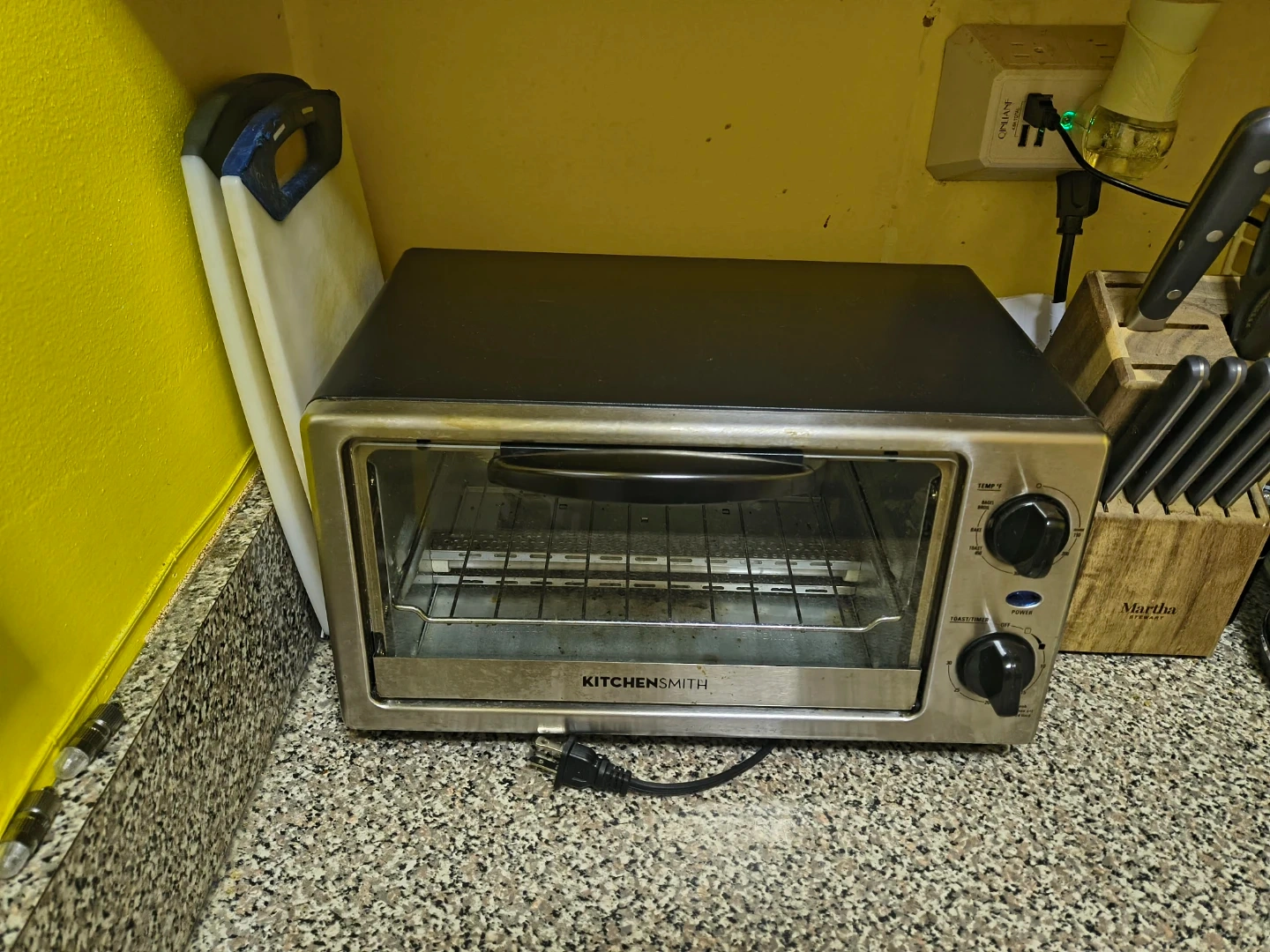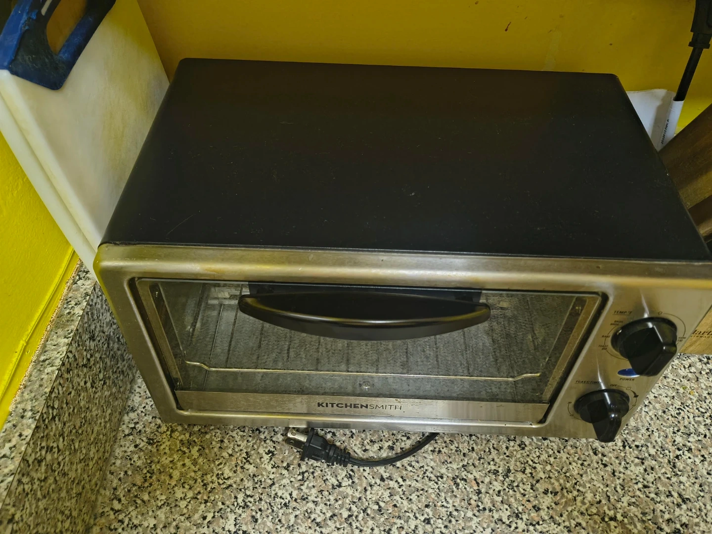 65Selling a KitchenSmith toaster oven! It has settings for bagel, broil, bake, and toast. You can set the temperature up to 450°F. There's also a timer function.