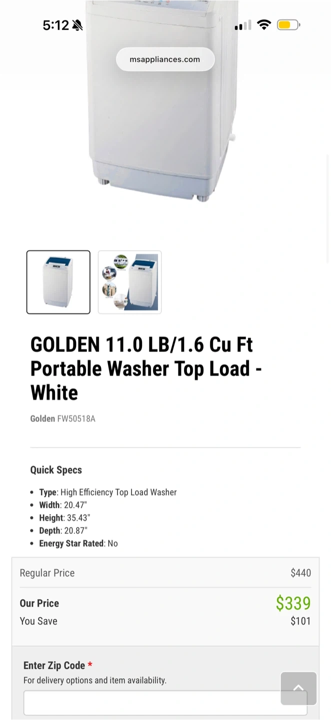Selling a GOLDEN portable washer. It's a top load washer with a capacity of 11.0 LB/1.6 Cu Ft.