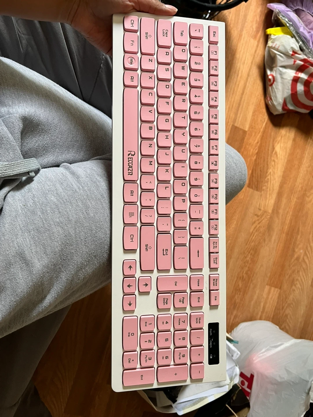75Selling a RECCAZR keyboard in a cute white and pink color combo! It's in good condition and ready for a new home. Perfect for adding a pop of color to your desk setup