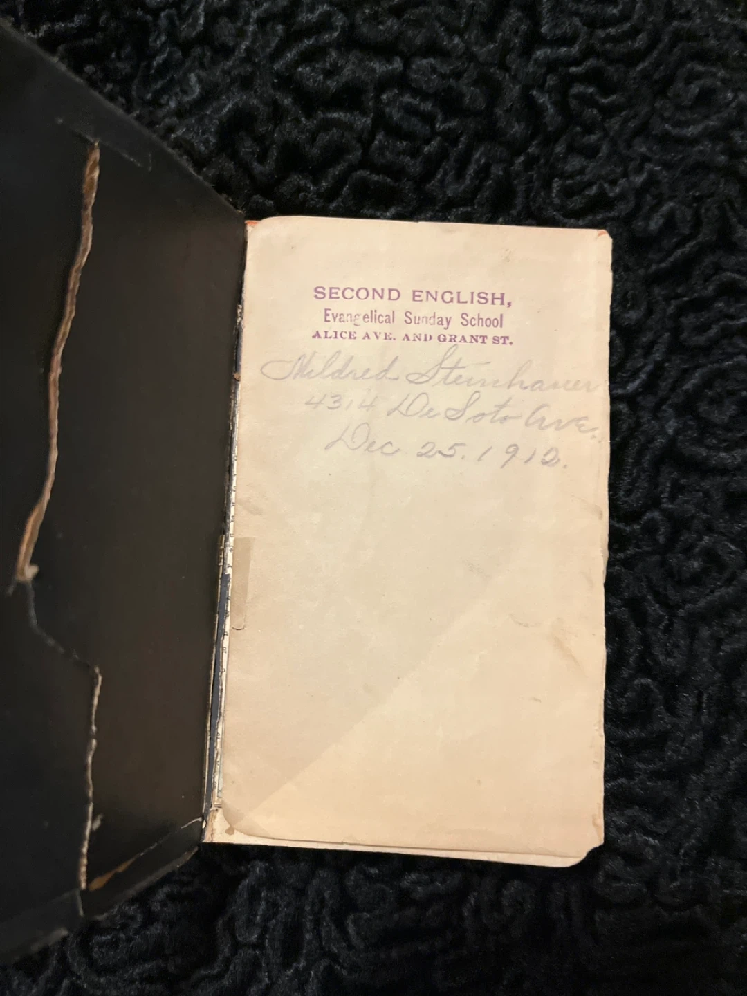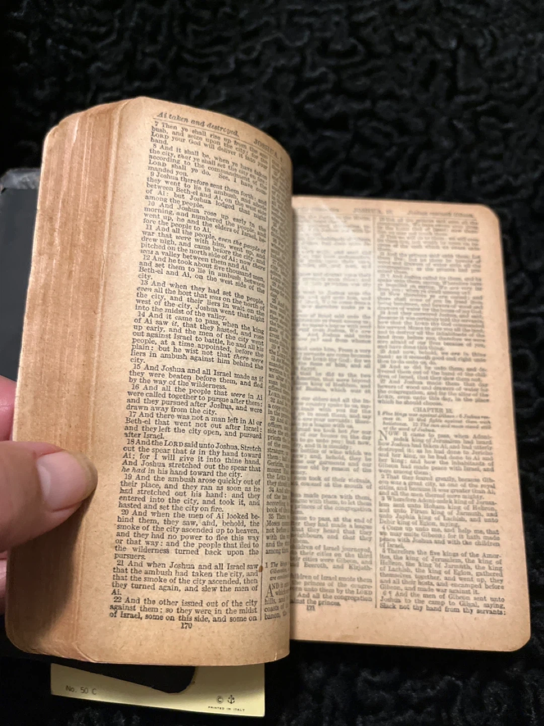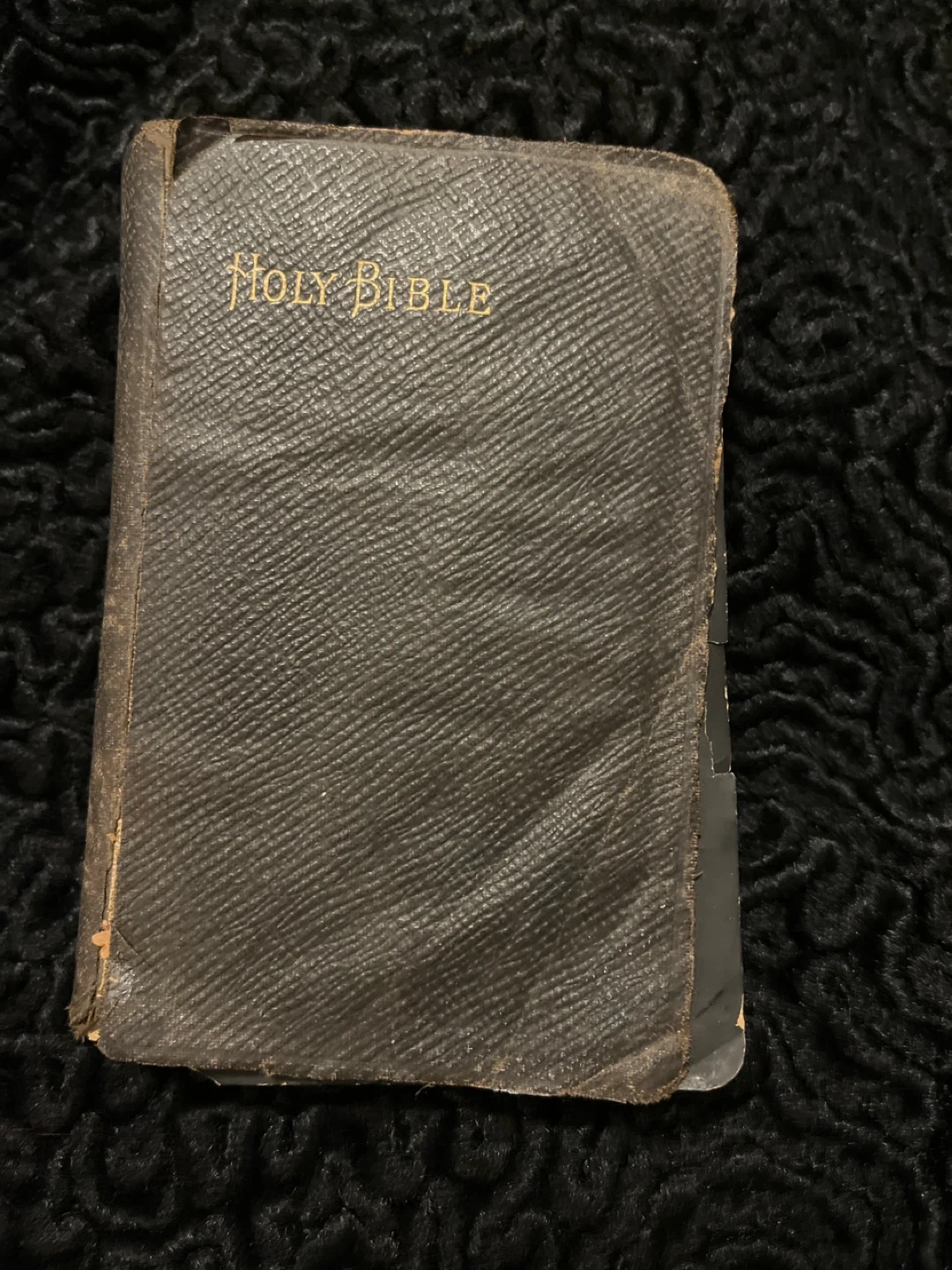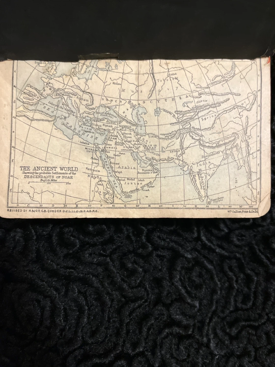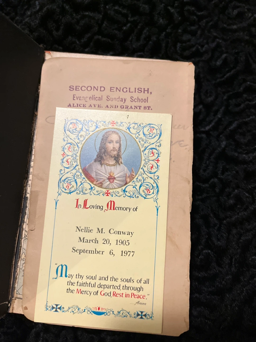 Selling a vintage Holy Bible. It shows signs of wear and age, but it's a unique piece of history. The book includes maps of the ancient world. There's also a memorial card inside for Nellie M. Conway, who was born March 20, 1905, and died September 6, 1977