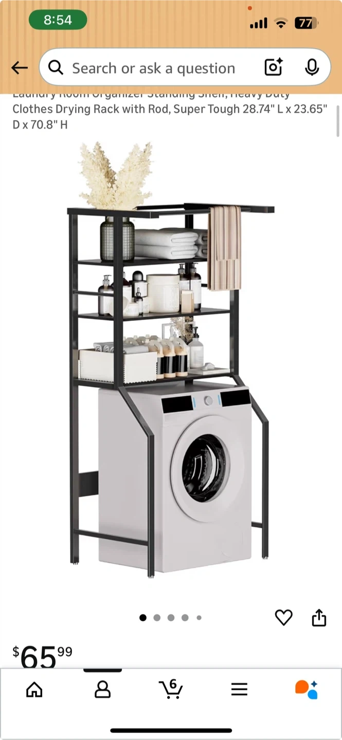 This heavy-duty laundry room organizer standing shelf has a clothes drying rack with a rod. It's super tough and measures 28.74" L x 23.65" D x 70.8" H. Originally listed for $65.99