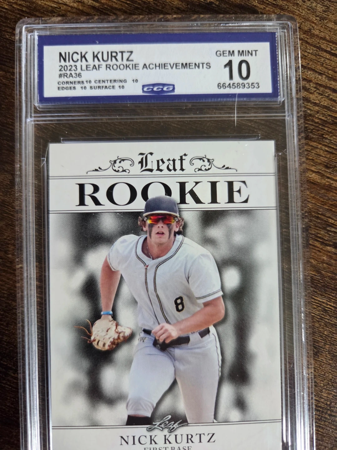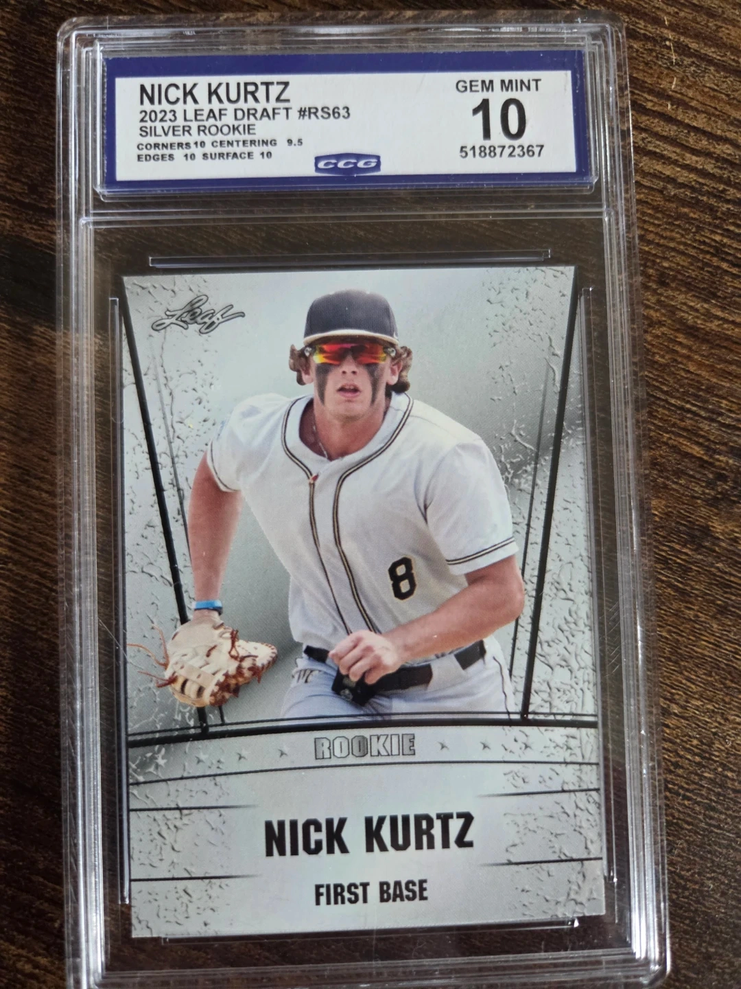 Buy & SellNick Kurtz Rookie Baseball CardNick Kurtz Rookie Baseball Card$14Selling Nick Kurtz rookie baseball cards. They are graded 10 and are in great condition. Would be a great addition to any collection!ConditionNew0 chats·0 favorites·3 viewsSELLERTonyWauconda150 reviewsWHERE TO MEETDairy Queen