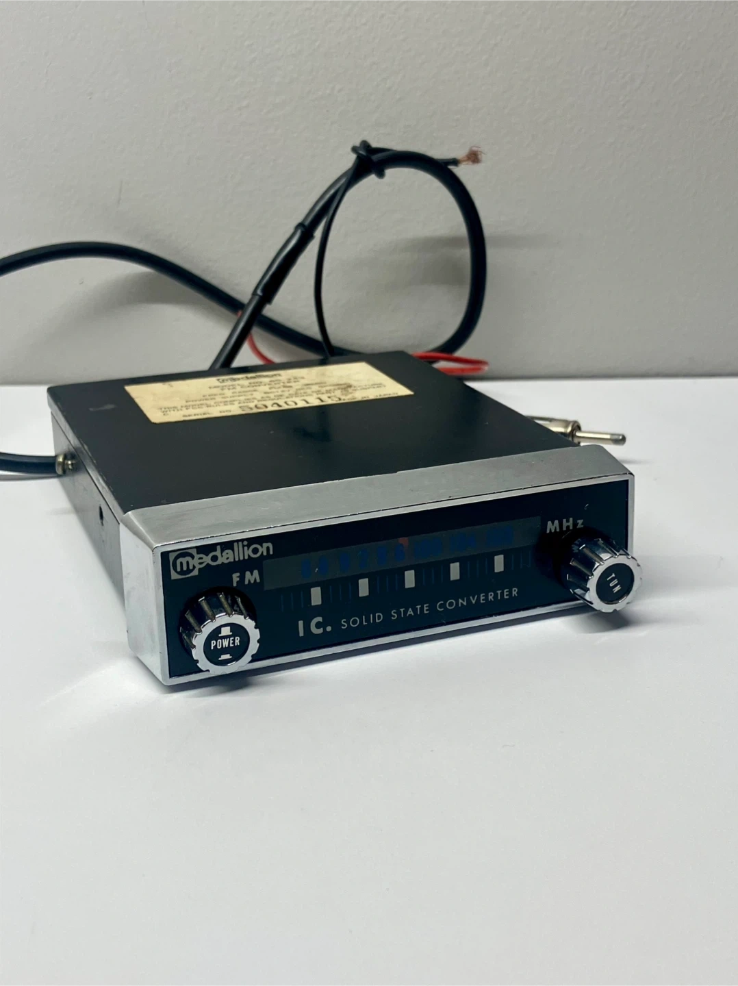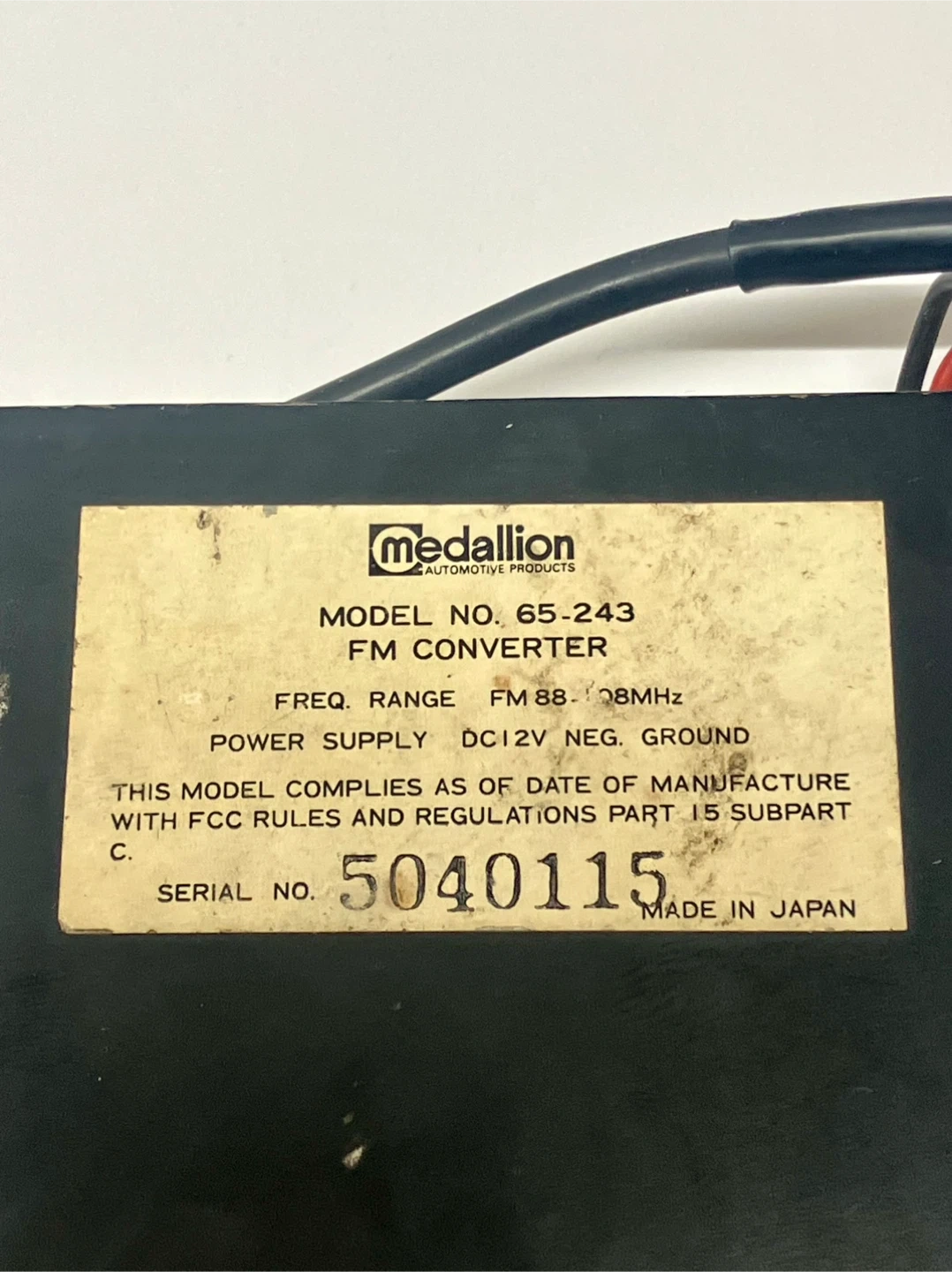 94Vintage Medallion Car FM Converter - Model 65-243 This item allowed cars with am radios to get FM stations. Model 65-243 measures 4” x 1” x 5.5”. This worked fine when removed from the vehicle in the 90s but has not been tested since. Buyer can return it if not functional. Power button on front left and tuner knob is on the right. Frequency adjustment screw on bottom of unit. From a smoke and pet free home. Check out in person before purchasing. Thanks for looking.