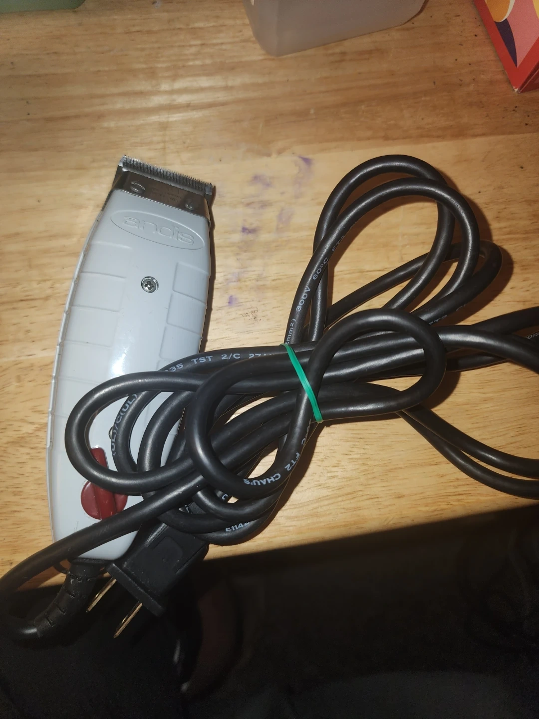 Selling an Andis T-Outliner trimmer. It's in good condition and ready for a new home! This trimmer is known for its close-cutting T-blade, perfect for outlining, detailing, and shaving. It's a reliable tool for achieving professional-looking results at home