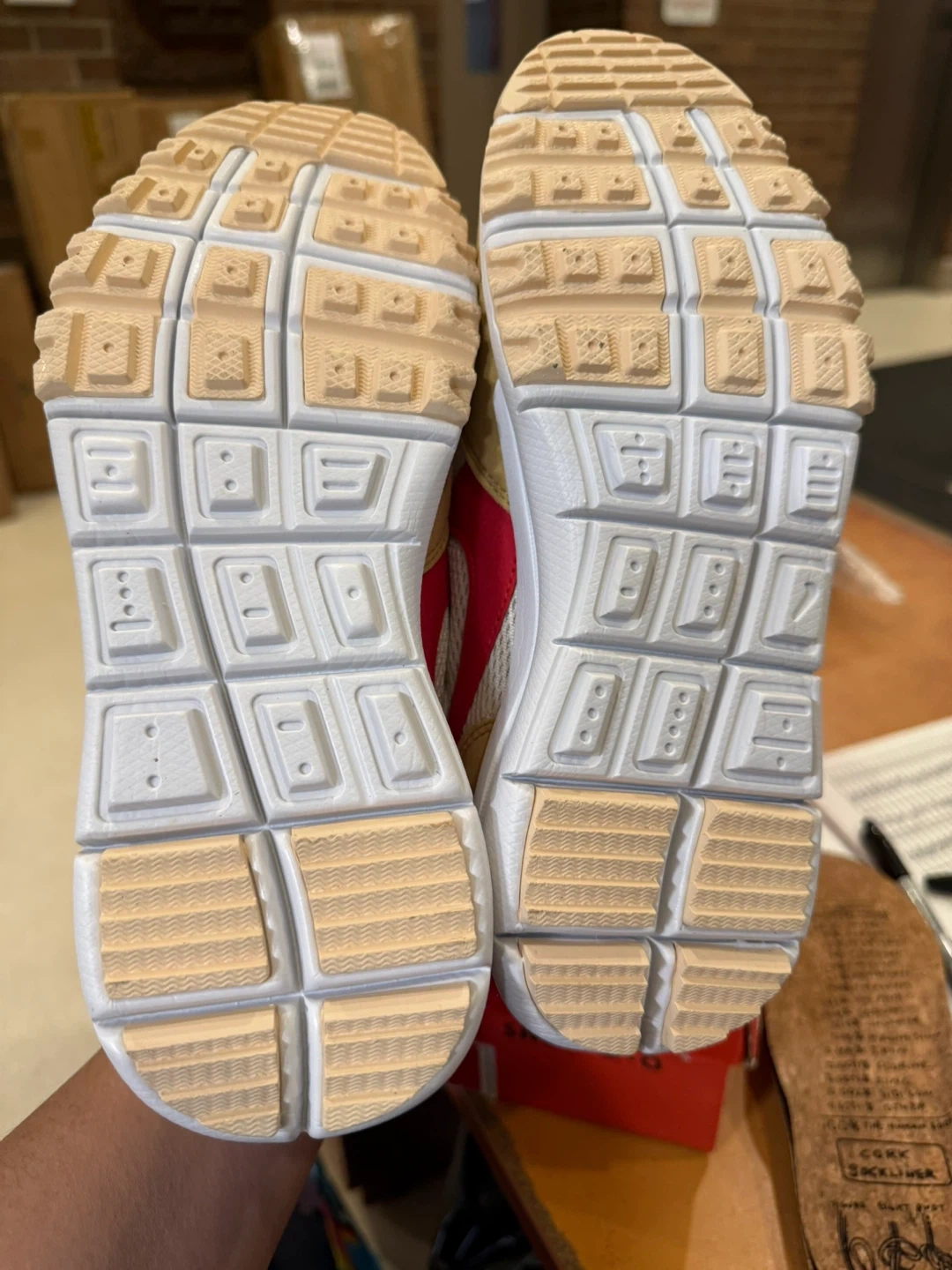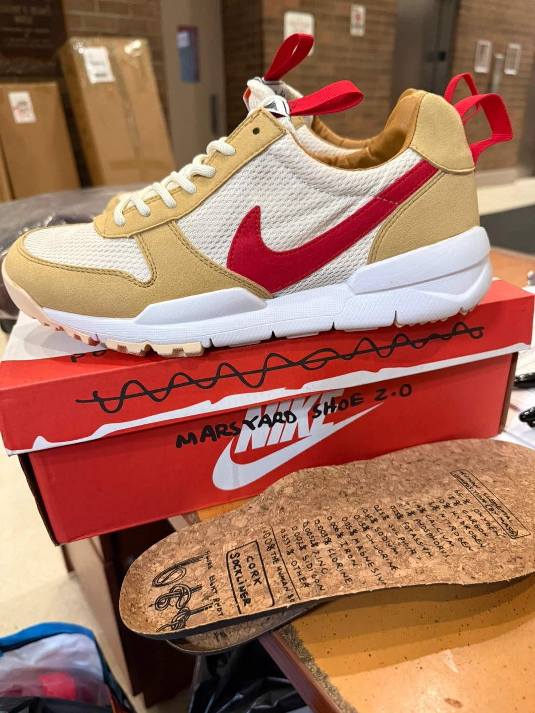 Selling a pair of Nike Mars Yard Shoe 2.0 in size 9.5! These shoes come with the original box. The shoes feature a unique design with a red swoosh and accents. They are in good condition and ready for a new home! These are very good quality reps!!