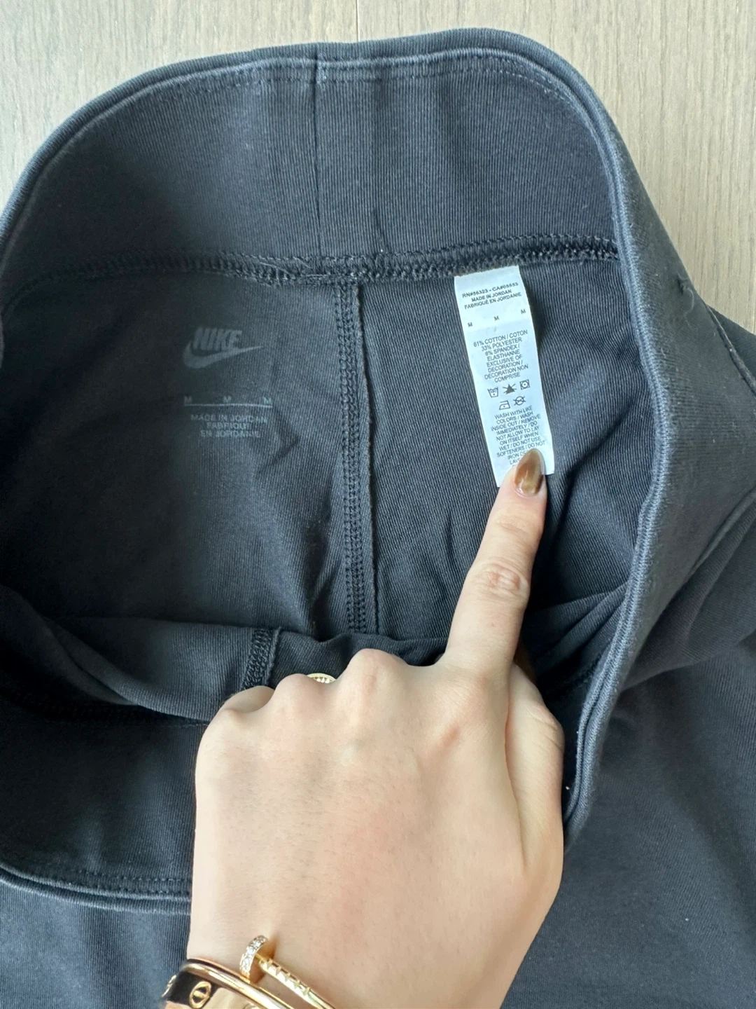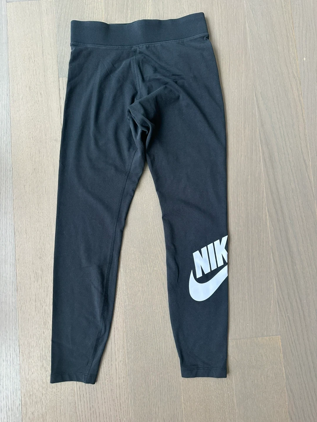 Selling a pair of Nike leggings in black, size medium! They're in great condition and ready for a new home. The material is 61% cotton, 33% polyester, and 6% spandex. Perfect for workouts or just lounging around!