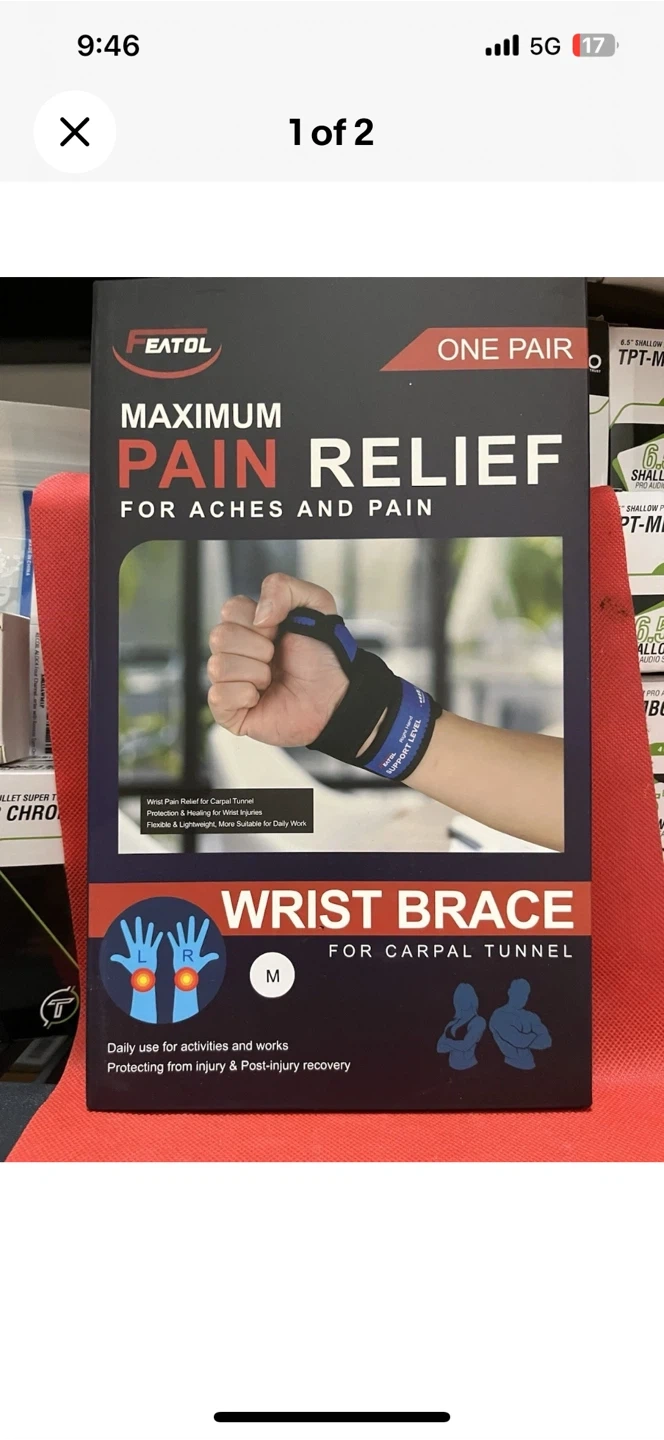 Get maximum pain relief with this FEATOL wrist brace, perfect for aches and pains! It's designed for carpal tunnel and daily use for activities and work. It helps protect from injury and post-injury recovery. This is a size Medium