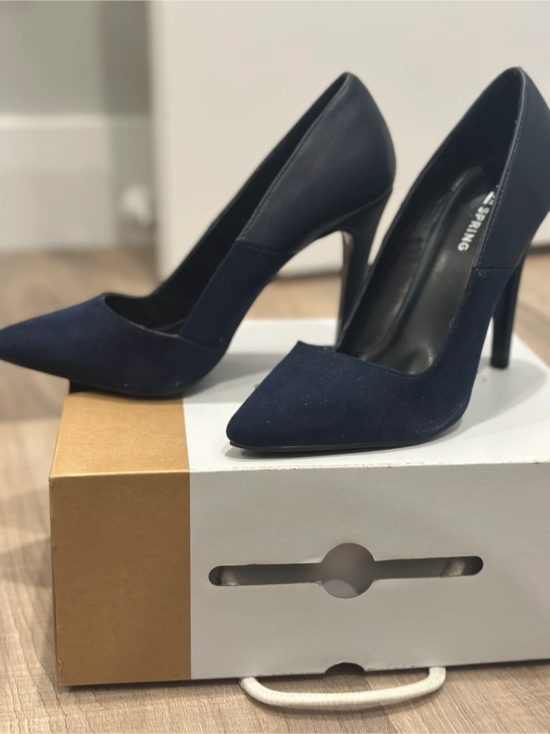 These are a pair of Call It Spring heels in navy blue. They come with the original box. Great for a night out!