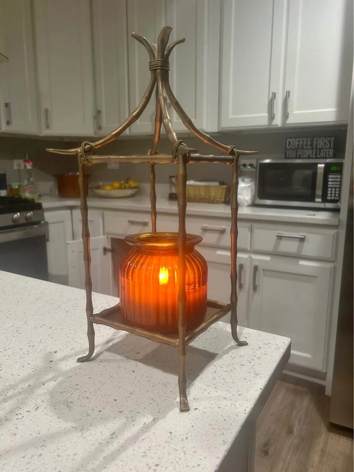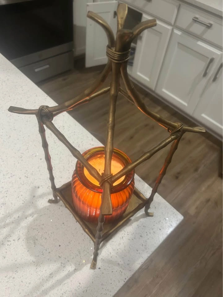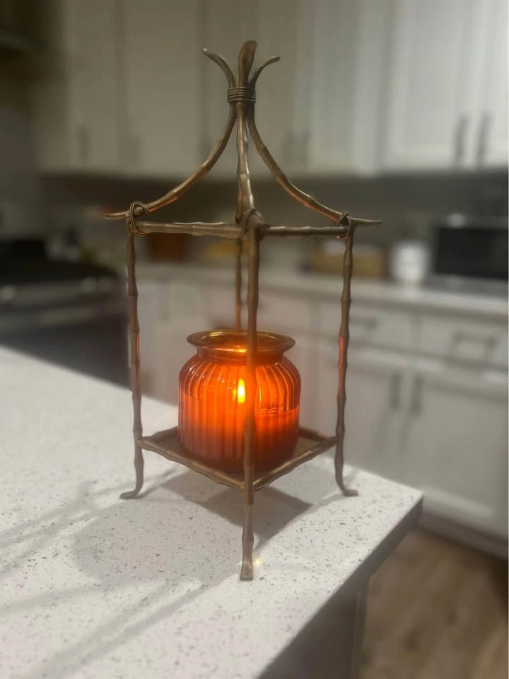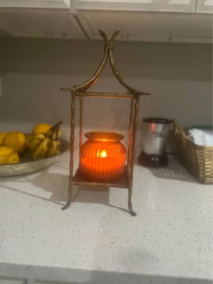 Beautiful mid-century Italian faux bamboo pagoda lantern with a gold gilt finish. These pieces are sought after for their elegant Hollywood Regency style and hand-crafted metalwork. Genuine gilt metal and Italian design make them rare decorative finds—especially in good vintage condition. Perfect for adding timeless luxury to your home décor.