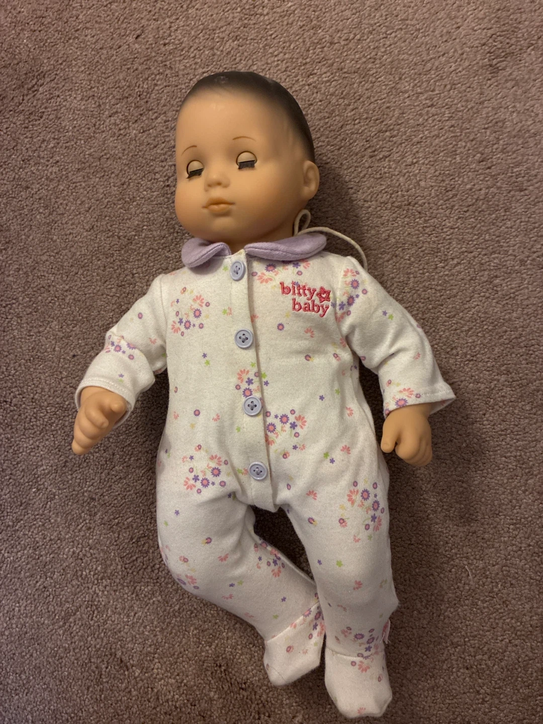 Buy & SellAmerican Girl Bitty Baby DollAmerican Girl Bitty Baby Doll$57Here's a sweet Bitty Baby doll from American Girl! She's wearing her original floral pajamas with a lavender collar. She's in good condition and ready for a new home!0 chats·0 favorites·16 viewsSELLERverifiedRebeccaFort Lee831 reviewWHERE TO MEETFortlee