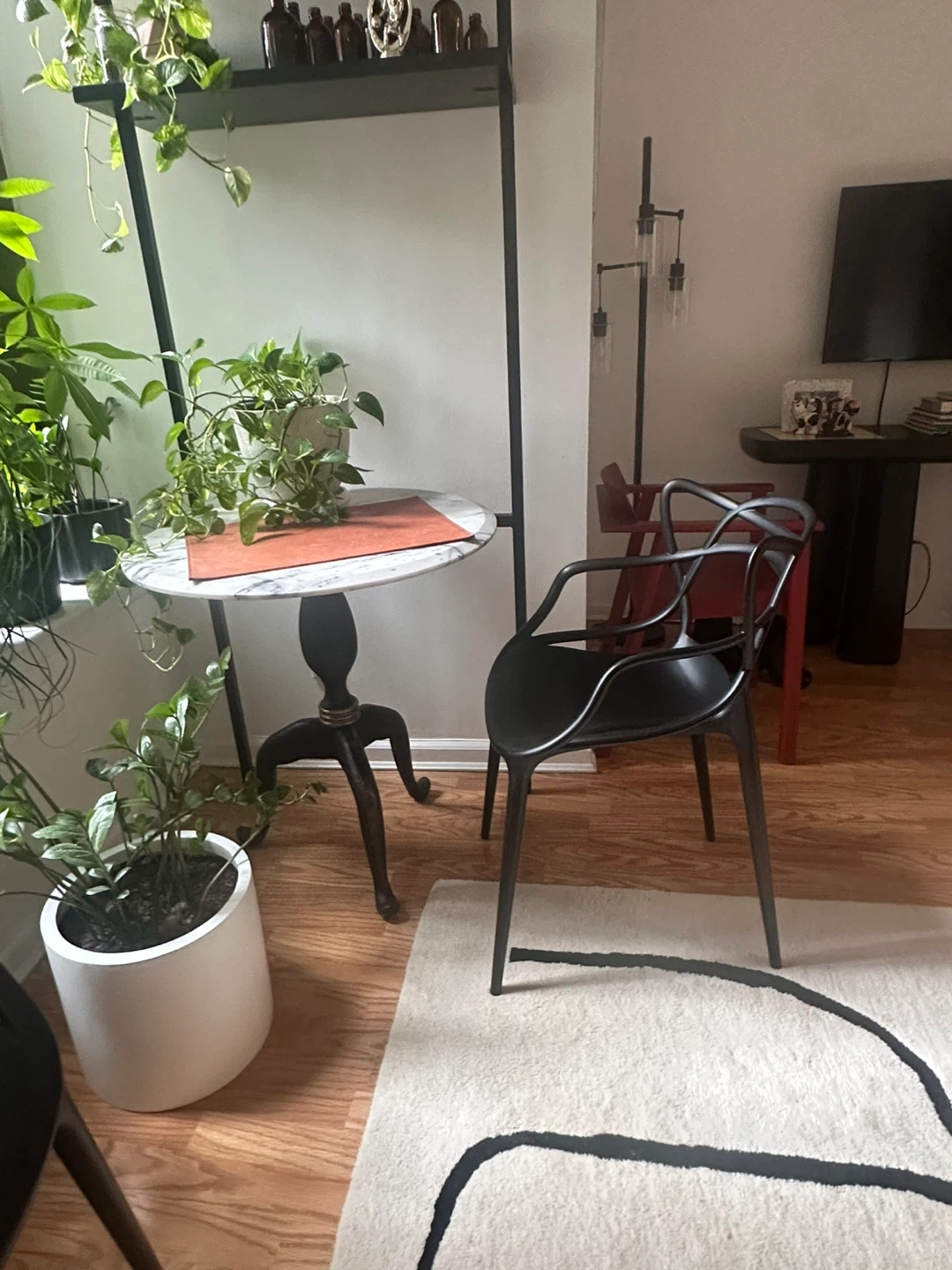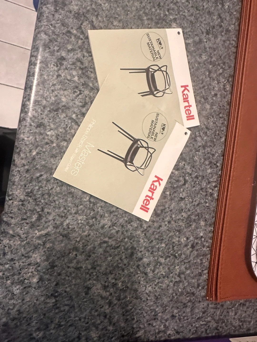 Selling two Kartell Masters chairs in black. These chairs are a modern, stylish addition to any room. Made with sustainable materials. Unique, iconic design. Perfect for indoor or outdoor use! The price is for the pair—minor scuffs (can be buffed) on chairs from use and movement—no dings. Comes with a scratch remover for everyday wear and tear on the legs.
