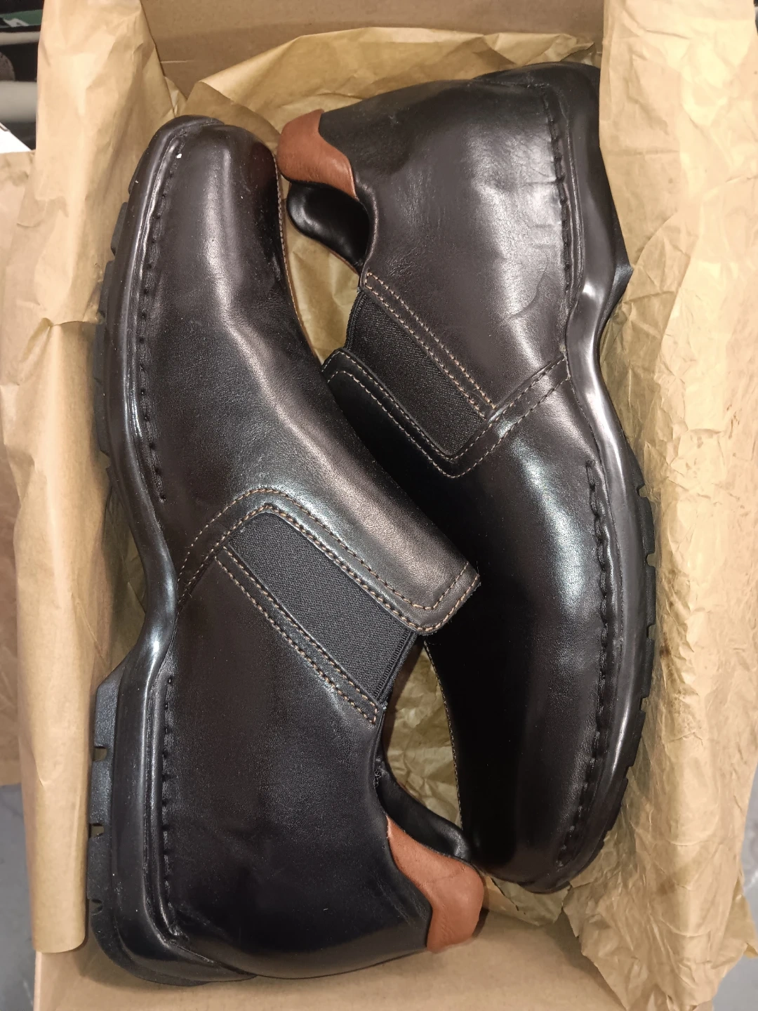 Selling a pair of Cole Haan Zeno Slipon II shoes in black, size 11W! They come with the original box. They were never used and are in perfect condition.