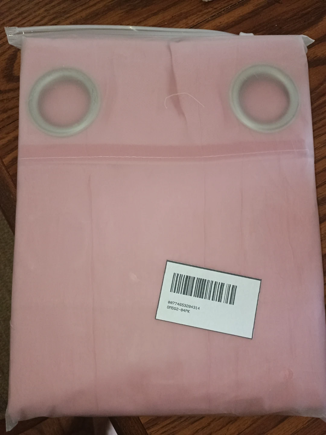Here's a set of pink curtains still in their original packaging! They are in new condition and ready to brighten up any room.