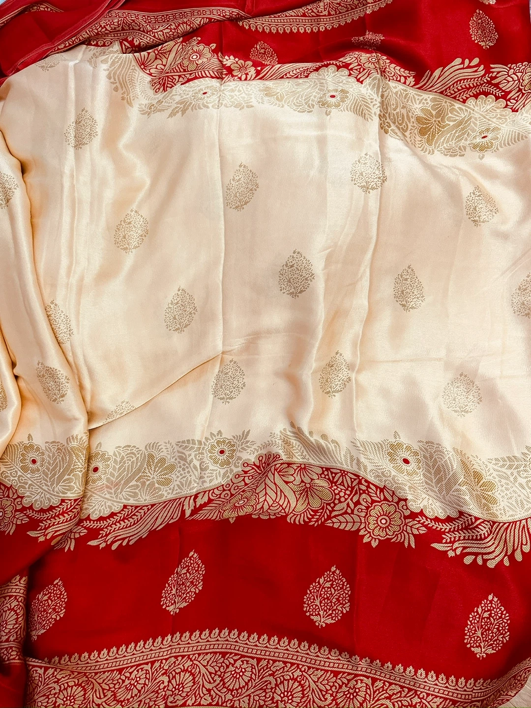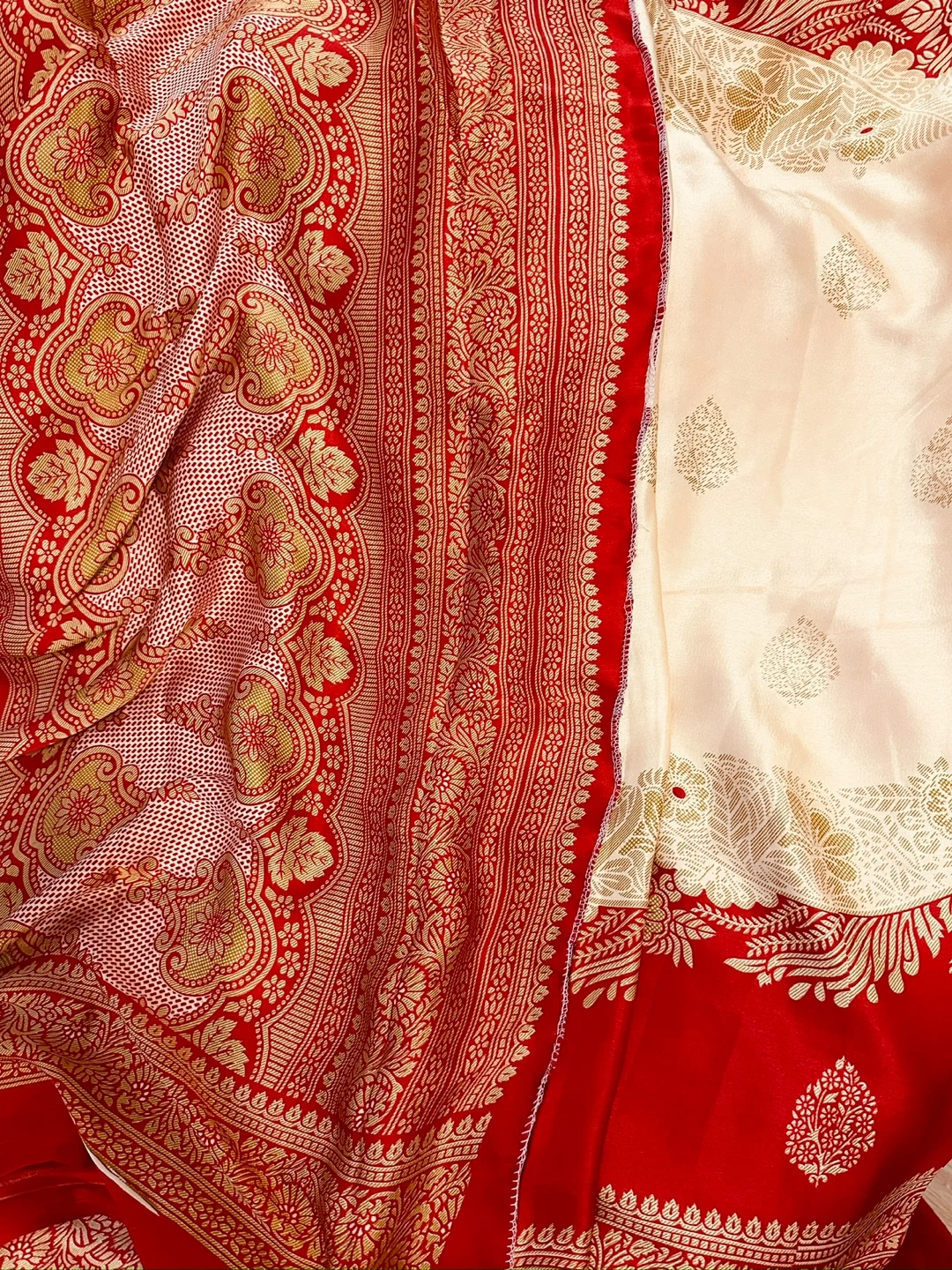 65Selling a beautiful silk saree with intricate designs! The saree features a vibrant mix of red, green, and cream colors, adorned with elegant gold patterns. Perfect for special occasions or adding a touch of cultural flair to your wardrobe! Each is 15 or 2 for 25
