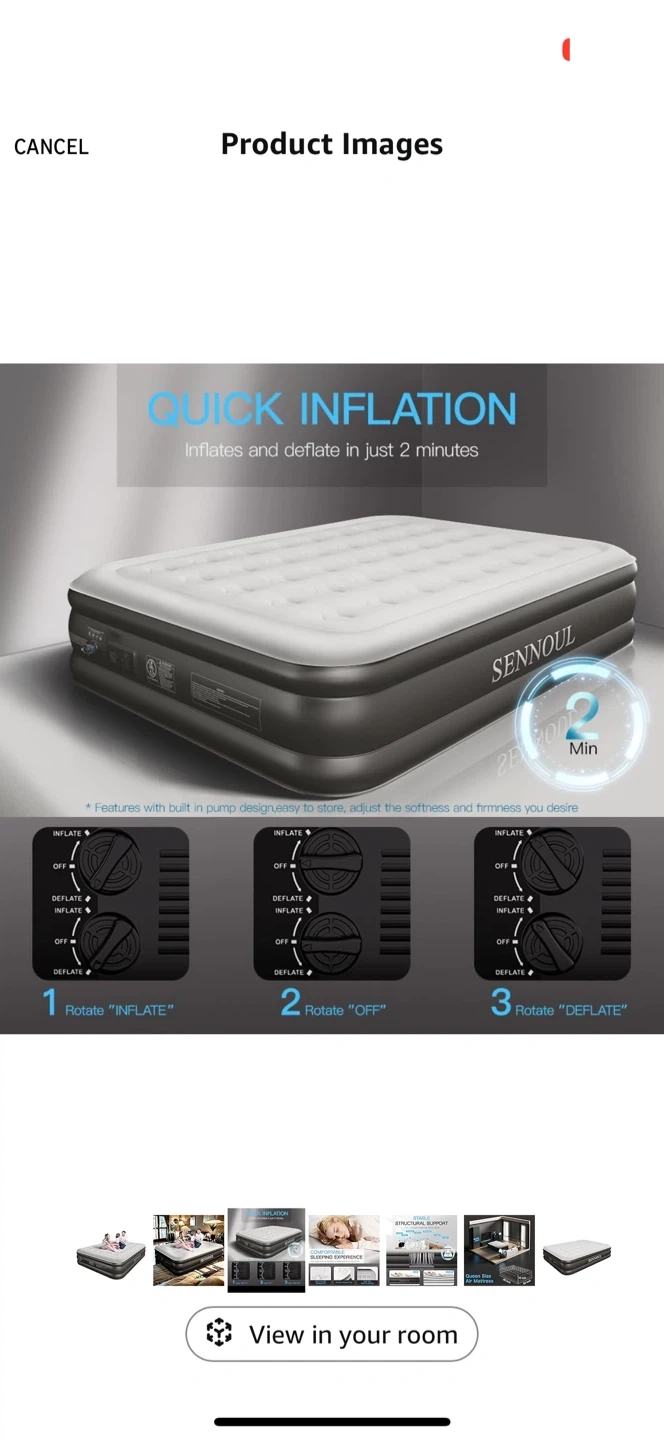 10Selling a SENNOUL air mattress in queen size! It provides stable structural support. It can inflate and deflate in just 2 minutes. Features with built in pump design easy to store, adjust the softness and firmness you desire