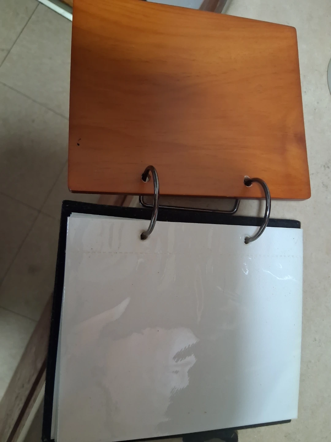 71I'm selling a photo album that features a wooden cover and a black velvet base. It's in great condition and ready for your cherished memories!