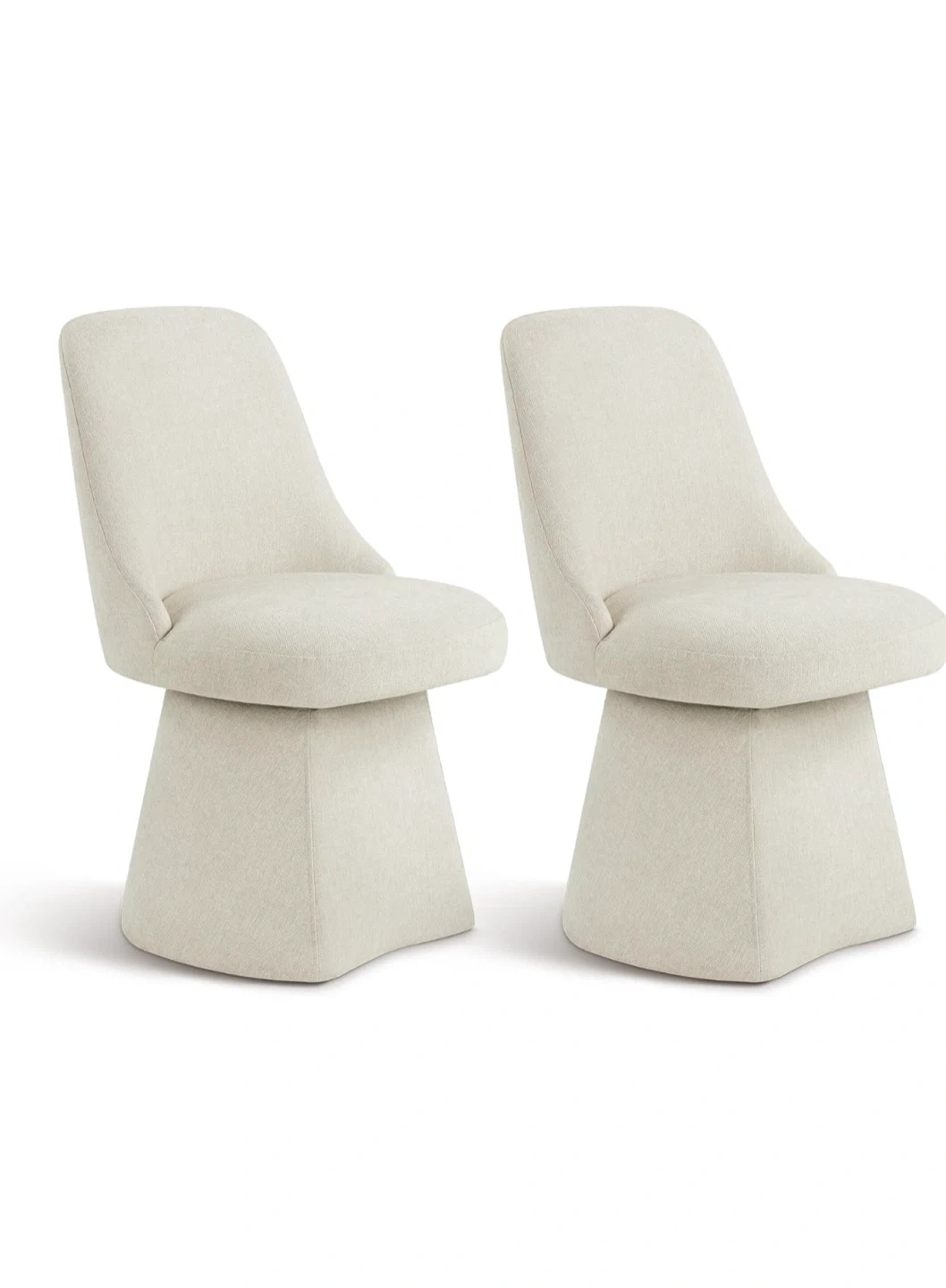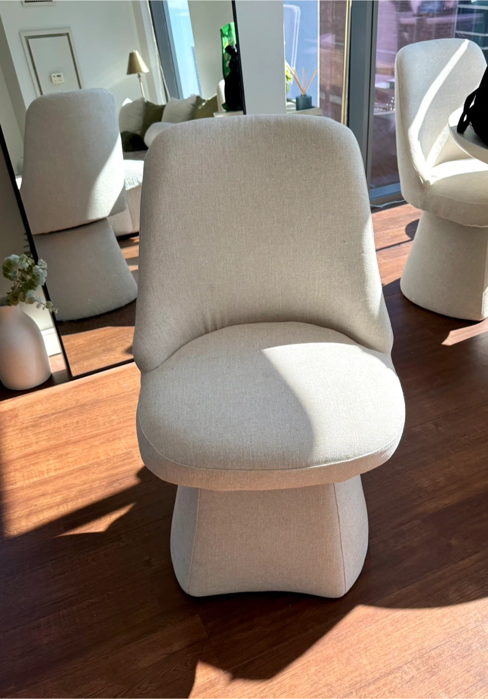 Selling a set of 4 cream-colored linen swivel dining chairs! They're in new / excellent condition!