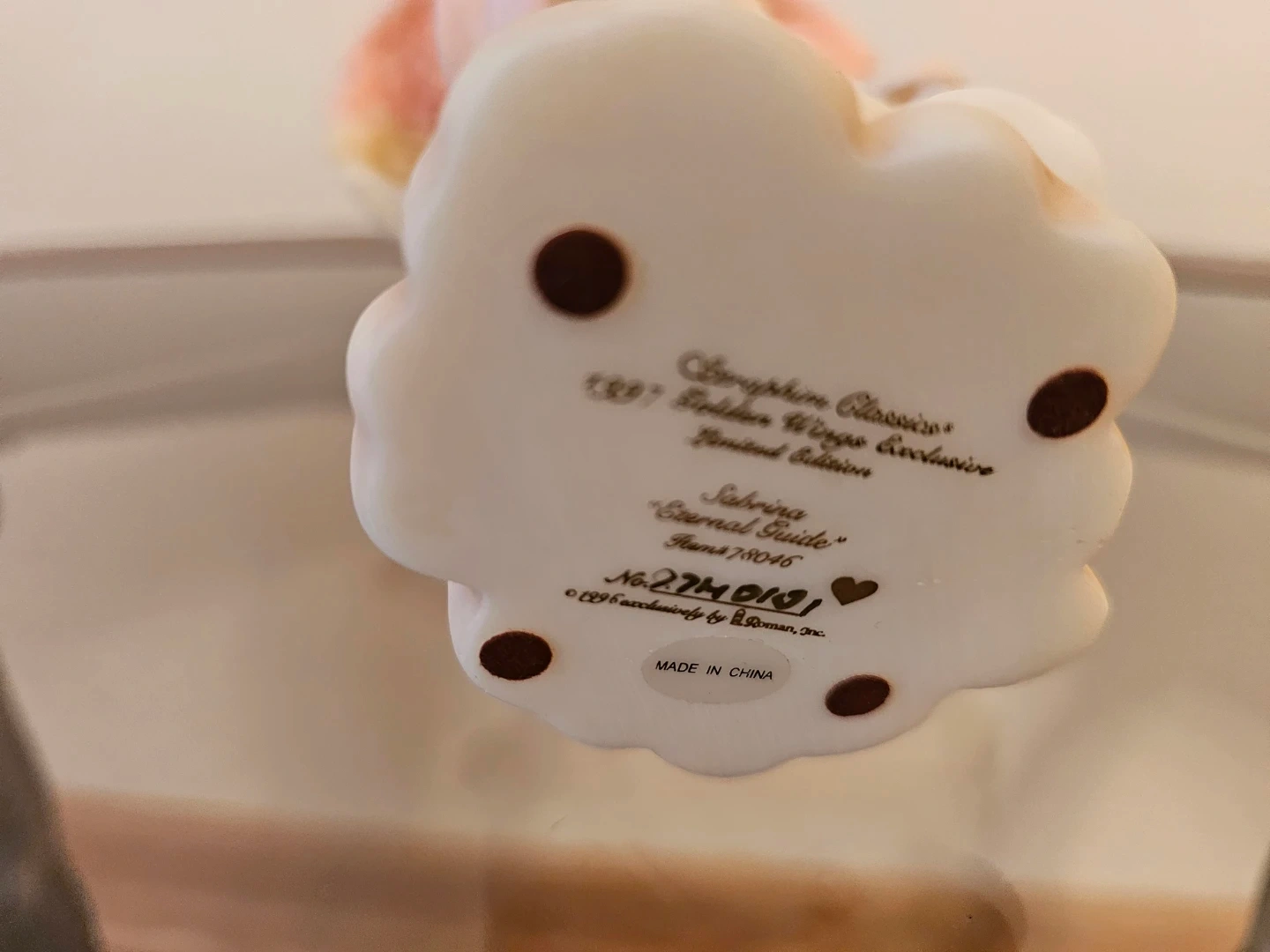 Selling a Seraphim Classics "Sabrina Eternal Guide" figurine. This is a 1997 Golden Wings Exclusive Limited Edition figurine by Roman, Inc. The item number is 78046 and the piece number is 274010. It comes with the original box