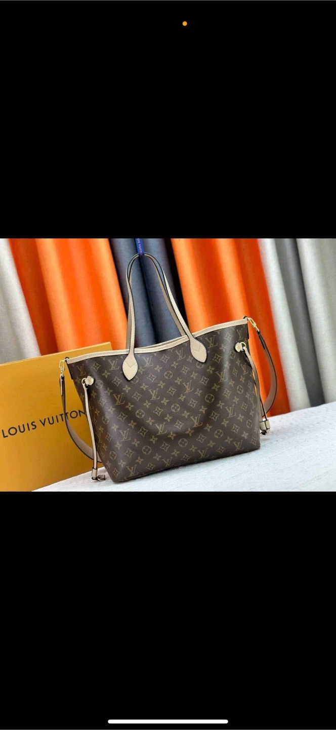 Selling a Louis Vuitton Neverfull MM tote bag. It's a stylish and practical everyday bag. The interior features a striped textile lining and a zipped pocket. Perfect for carrying all your essentials in style!