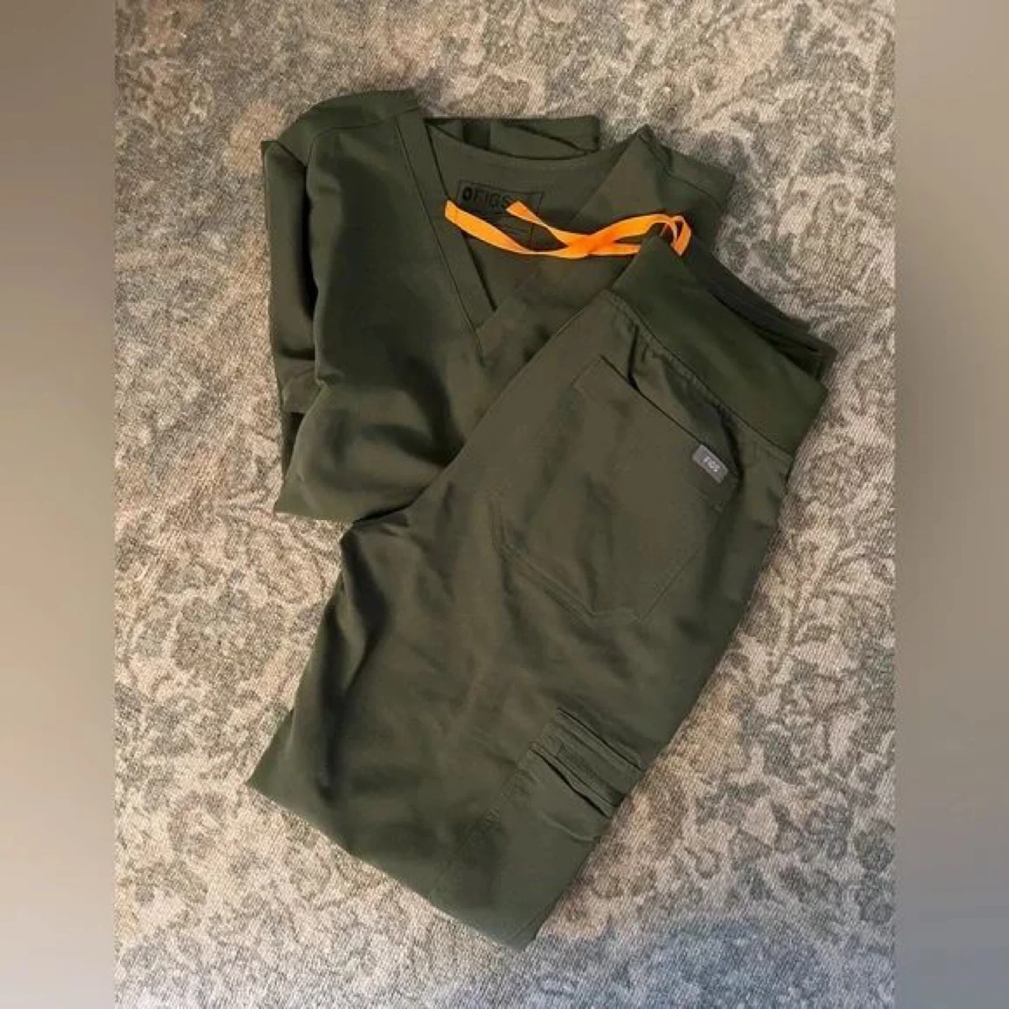 Selling a FIGS scrub set in olive green! It's in great condition and ready for a new home. Perfect for healthcare professionals or anyone who loves comfortable and stylish workwear