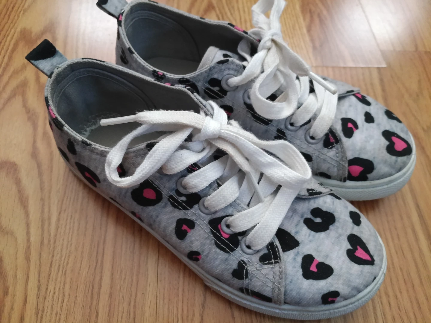 Buy & SellShoesShoes$10Cute pair of grey sneakers with a black and pink leopard print design. Like new condition - size 2 ( just outgrew them) 0 chatsยท0 favoritesยท3 viewsSELLERanita cookeLeslie Valley666 reviewsWHERE TO MEETDavis Drive