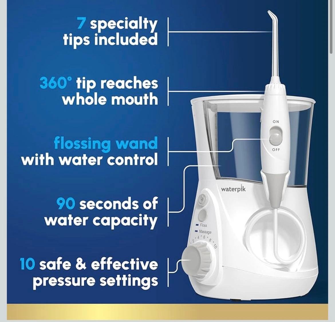 15Open box For Teeth Cleaning, Gums, Braces, Dental Care, Electric Power With 10 Settings, 7 Tips For Multiple Users And Needs, ADA Accepted, White WP-660, Packaging May Vary