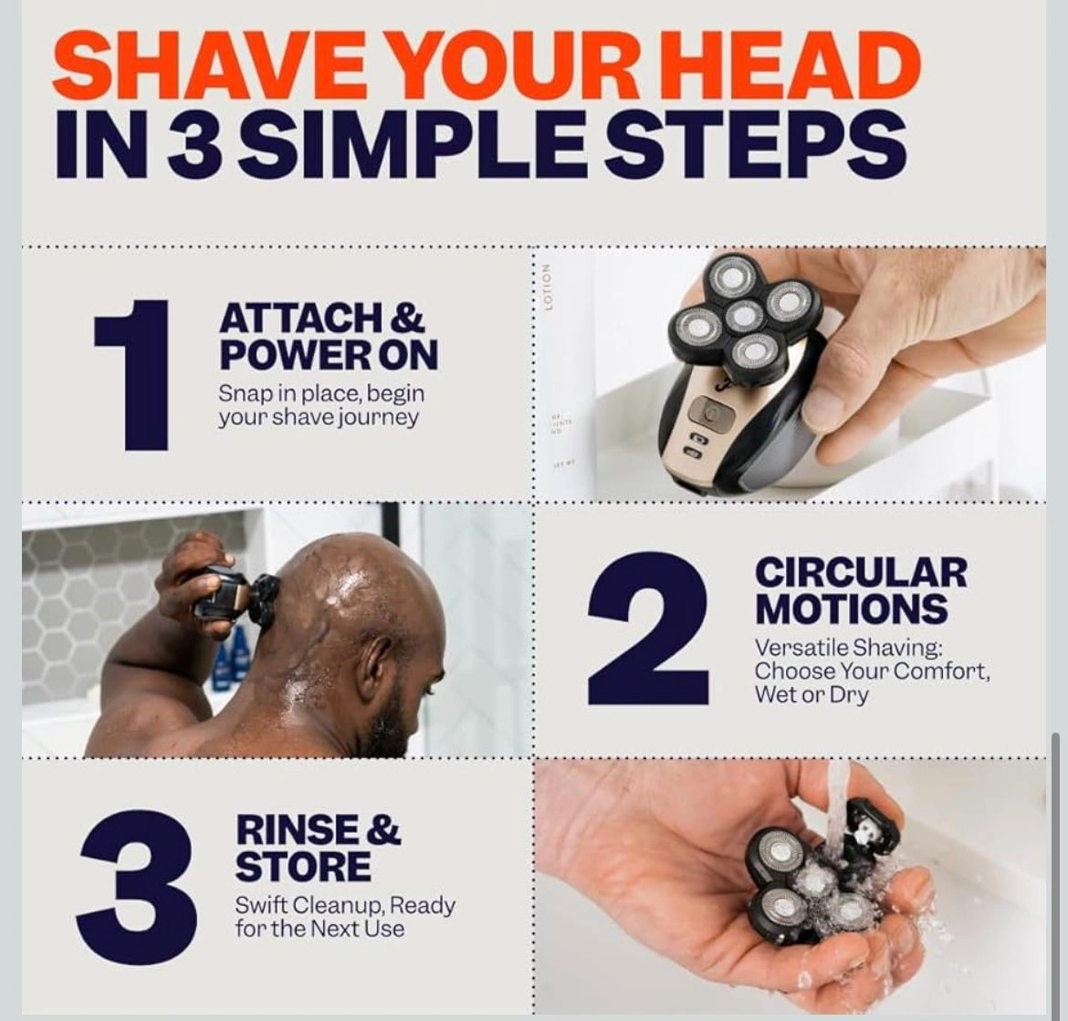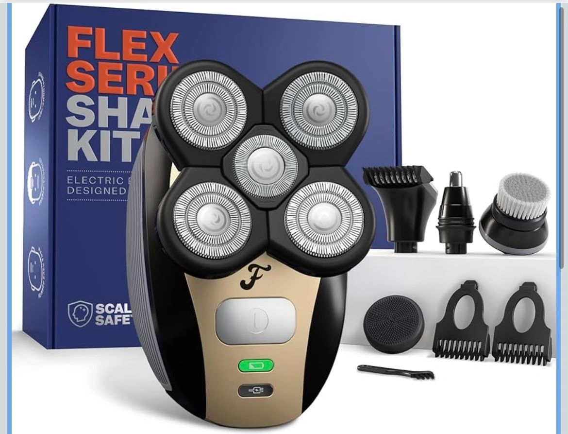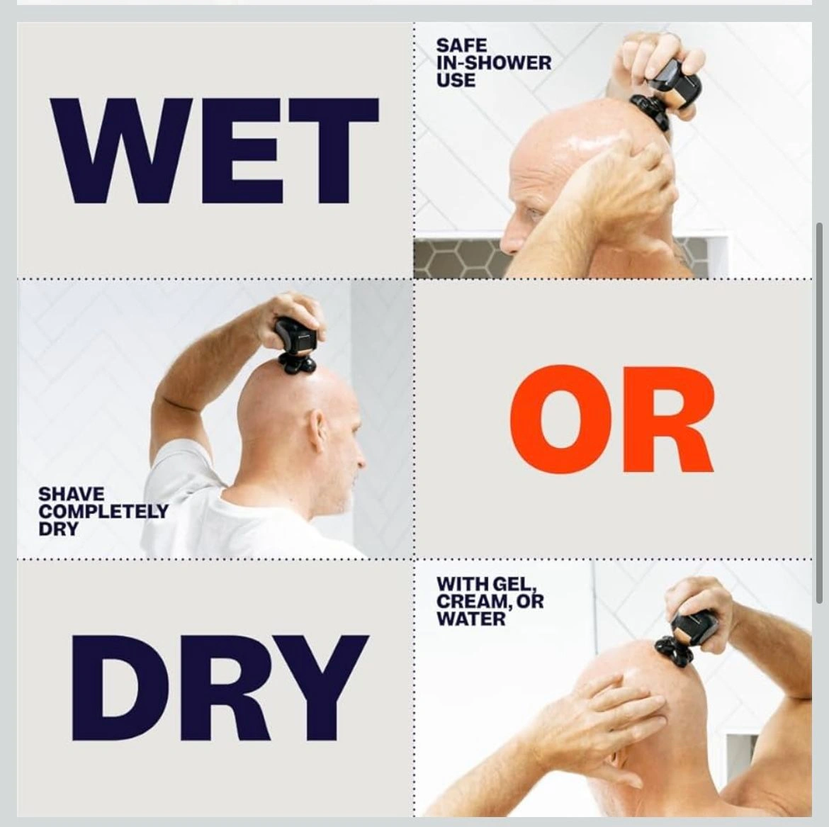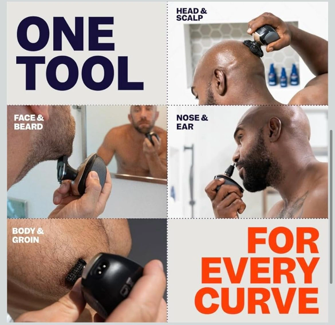 15Open box Mens Cordless Rechargeable Wet/Dry Skull Bald Head Back & Groin Waterproof Razor with Rotary Blades, Clippers, Nose Trimmer, Brush, Massager.