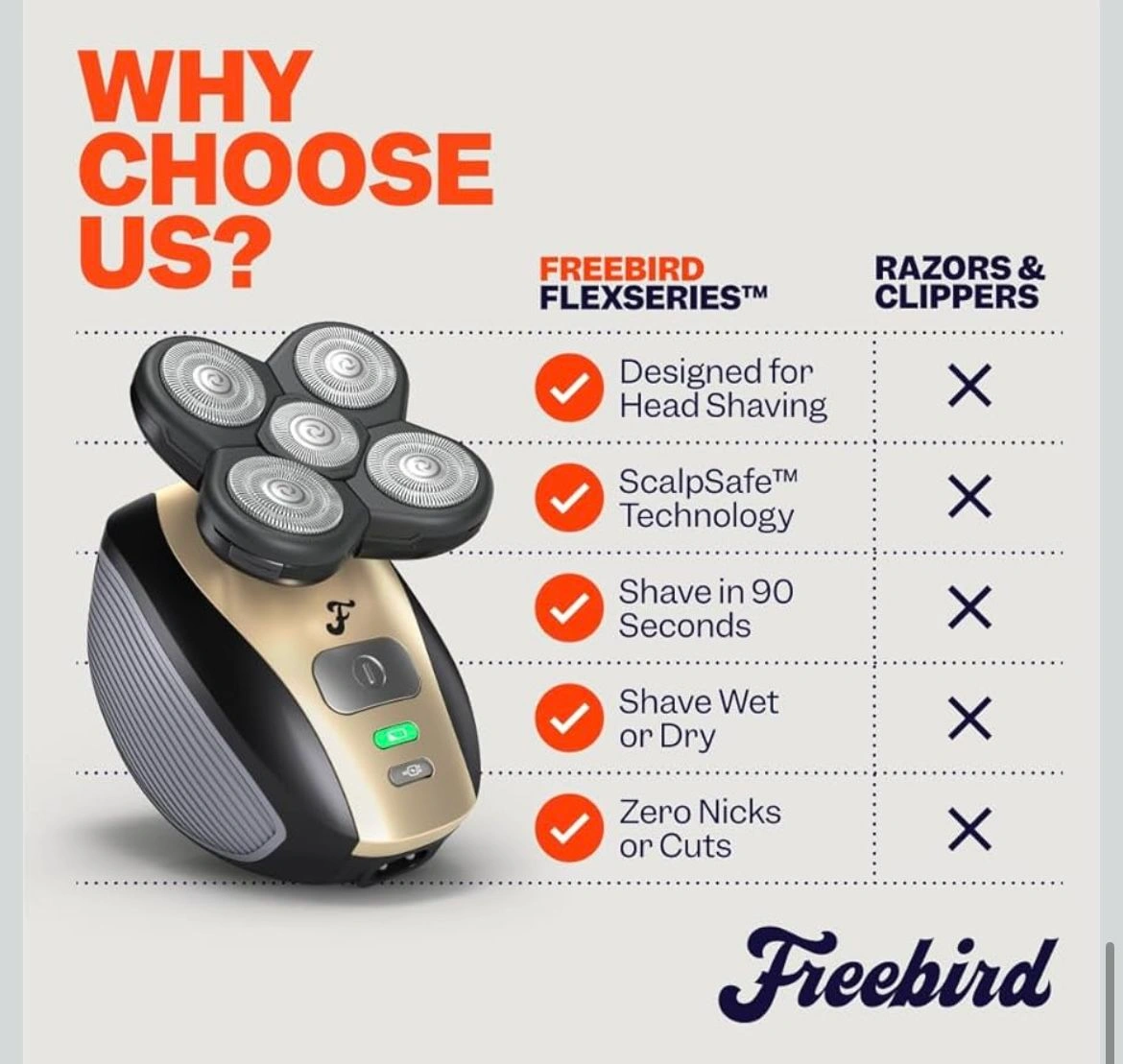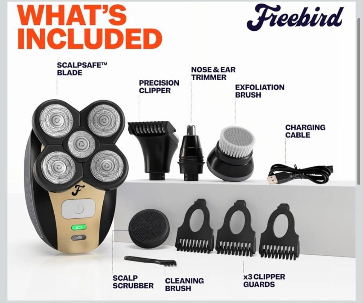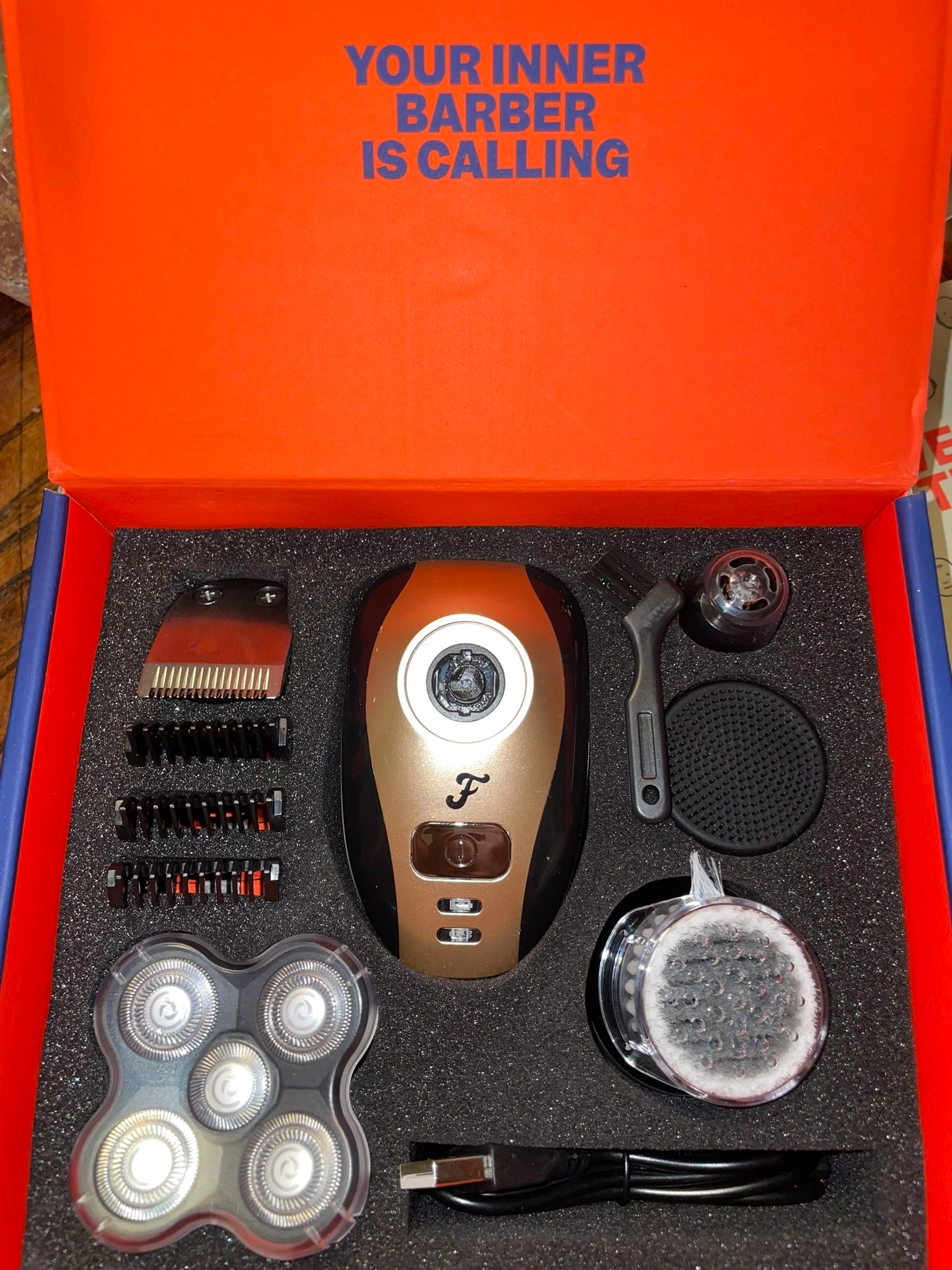 15Open box Mens Cordless Rechargeable Wet/Dry Skull Bald Head Back & Groin Waterproof Razor with Rotary Blades, Clippers, Nose Trimmer, Brush, Massager.