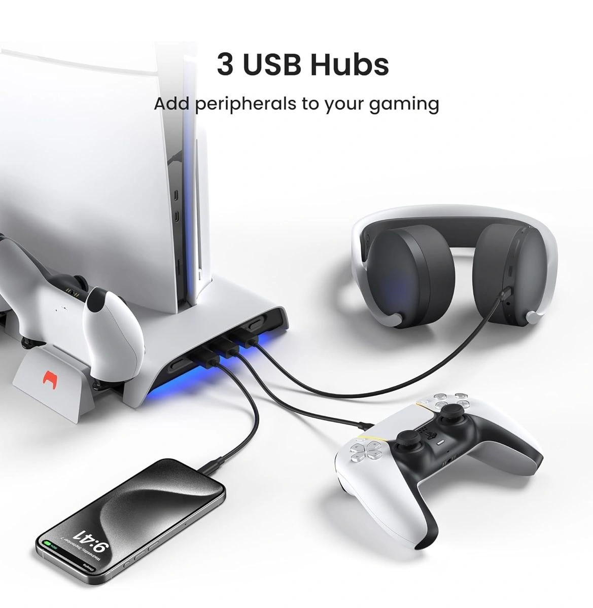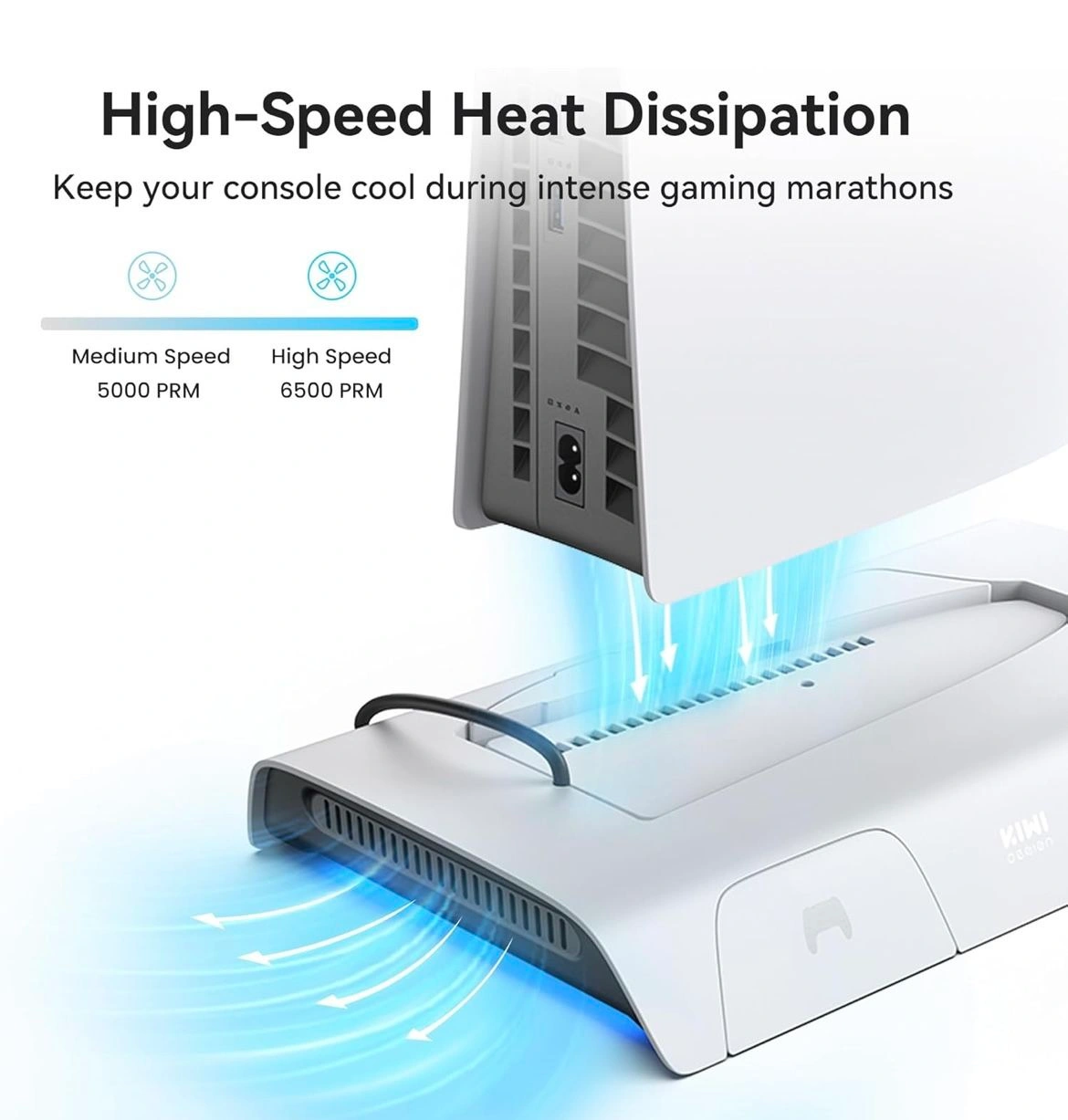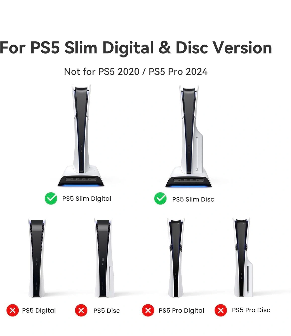 15Open box Controller Charging Station with Magnetic Dongles, Vertical Stand with High-Speed Cooling Fan and RGB for PS5 Slim Accessories.