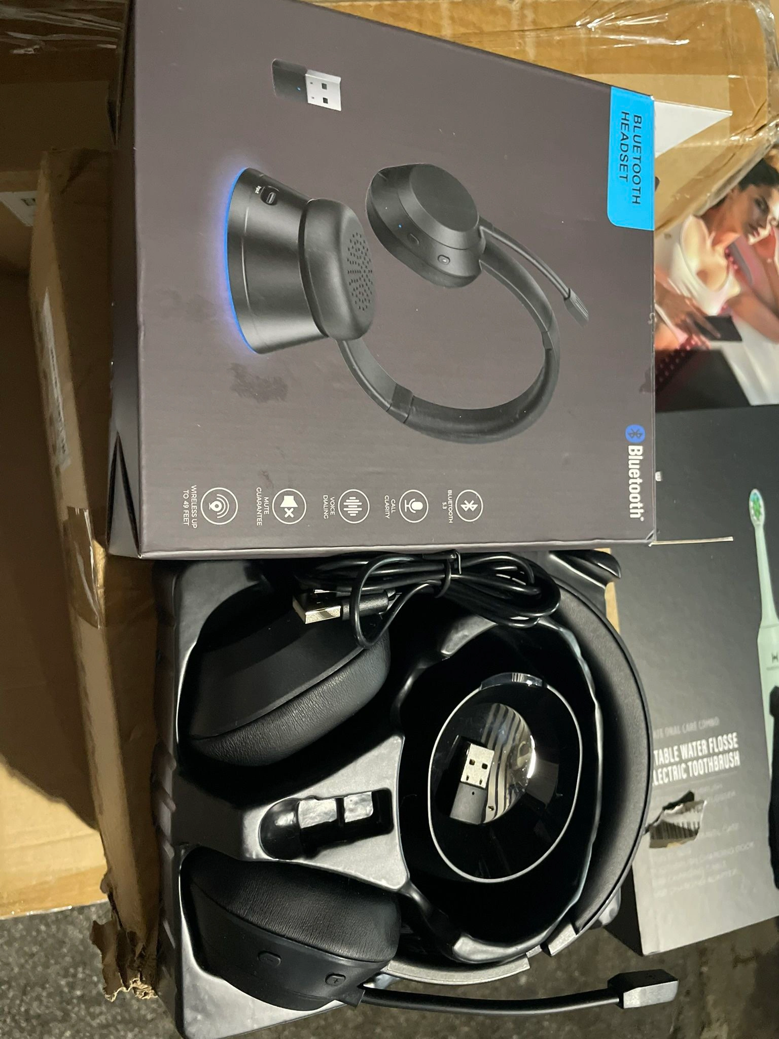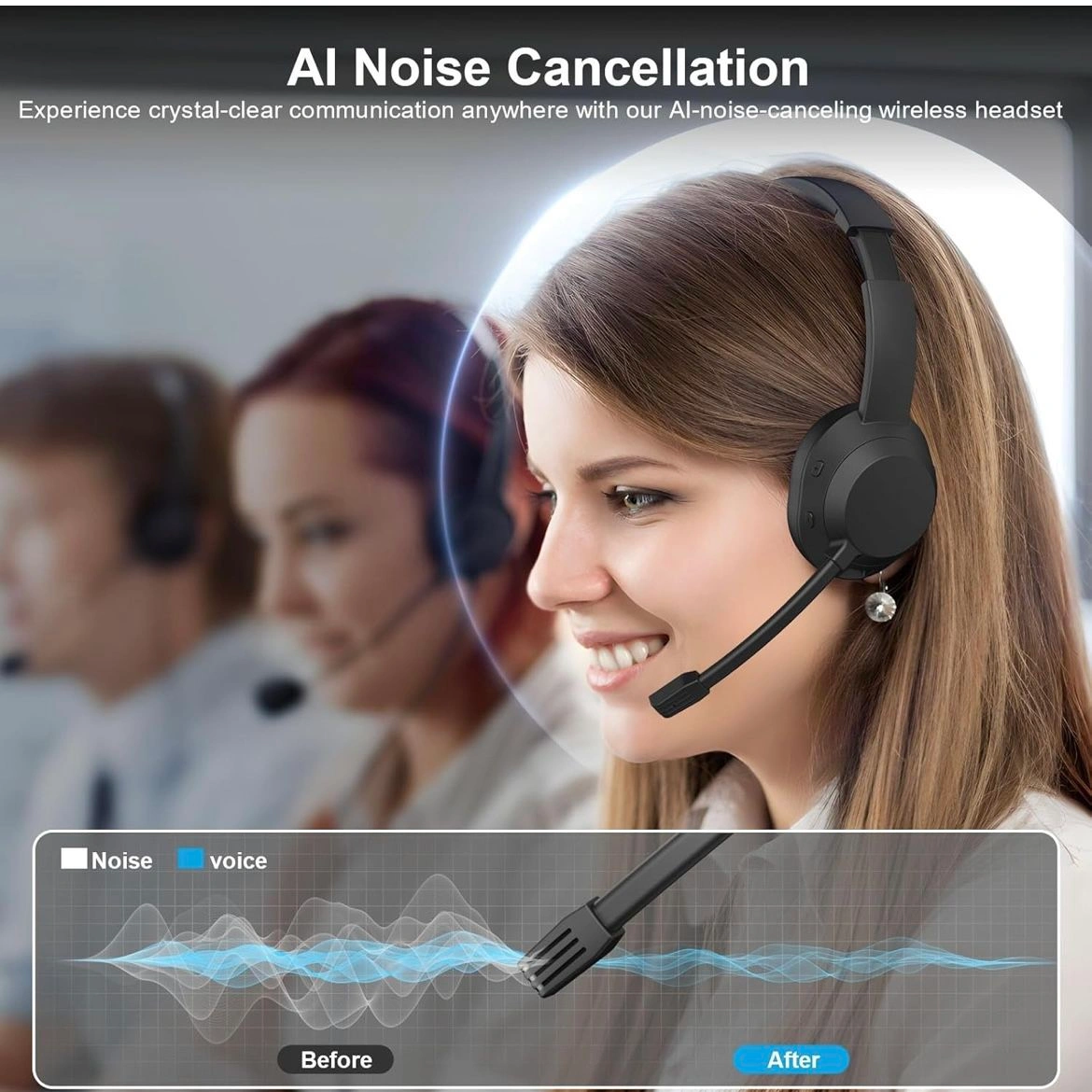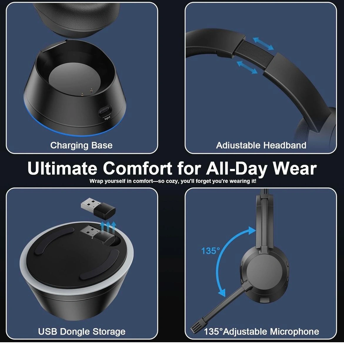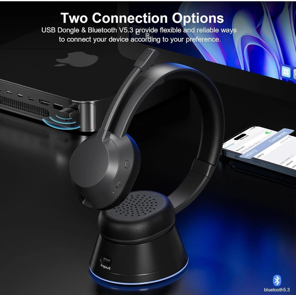 15Open box Bluetooth Headset with Microphone (Noise Cancellation), Wireless Headphones with USB Dongle & Charging Dock for Call Center/Home/Computer/PC/Laptop/Teams/Zoom.