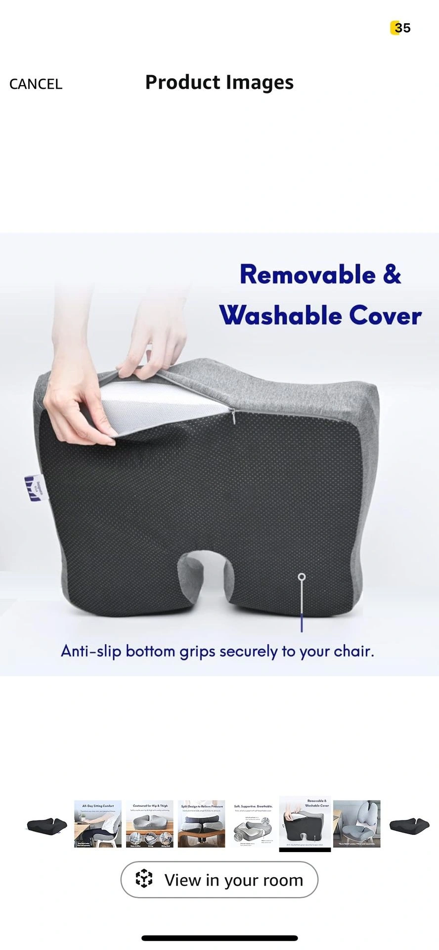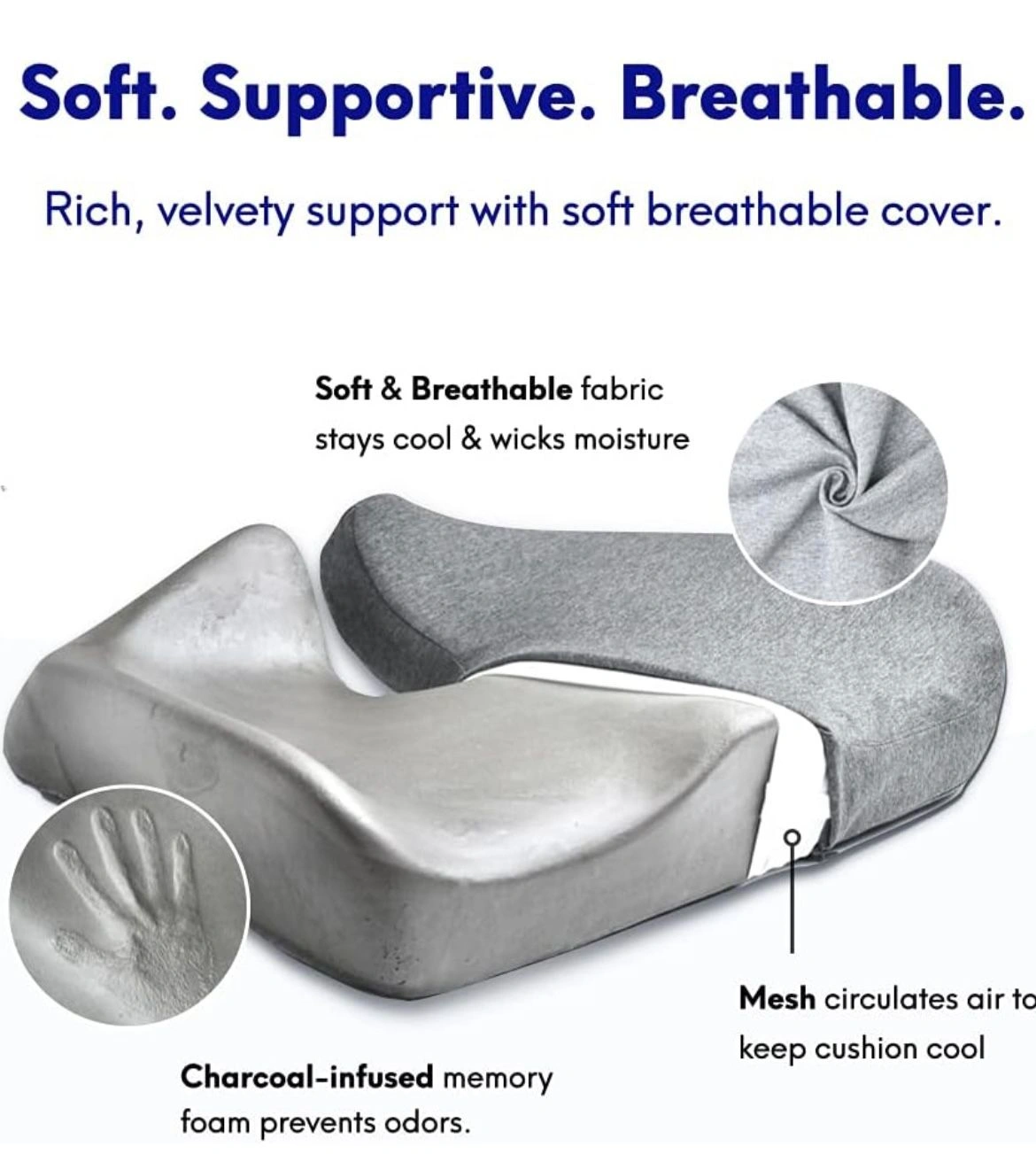 15Open box Long Sitting Hours on Office & Home Chair - Extra-Dense Memory Foam for Soft Support. Car Pad for Hip, Tailbone, Coccyx, Sciatica - Black.