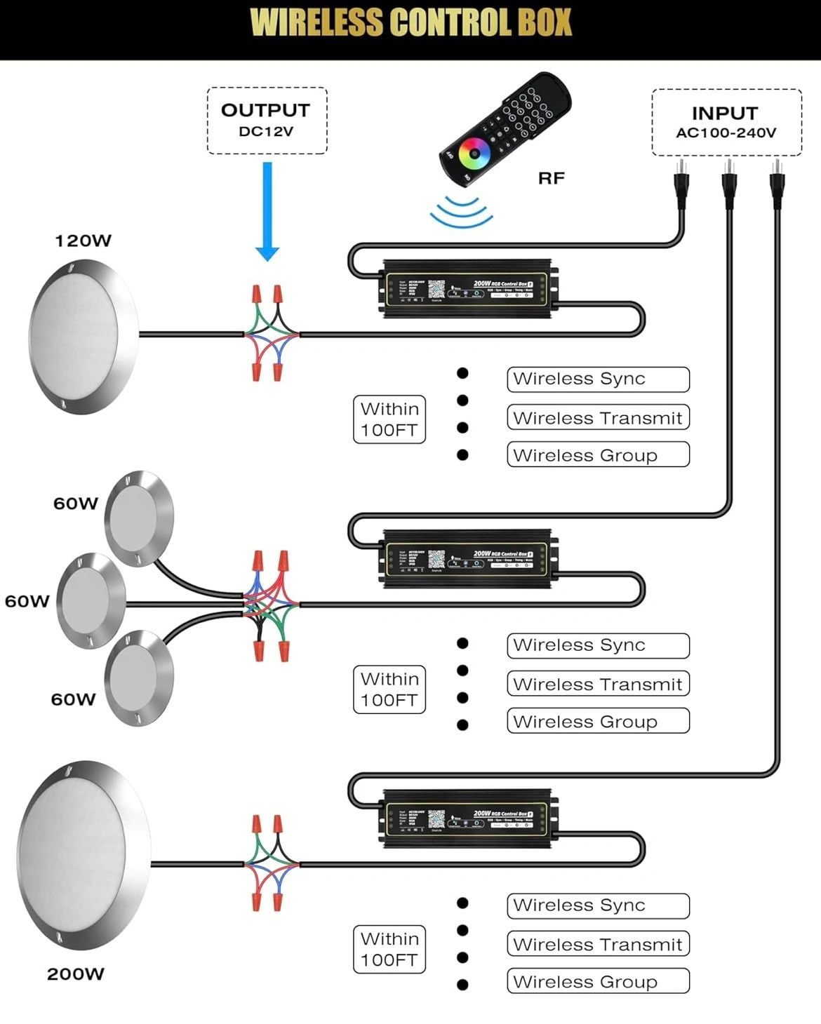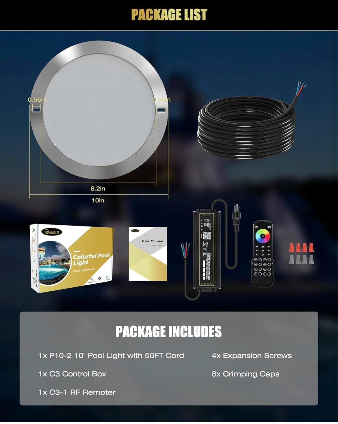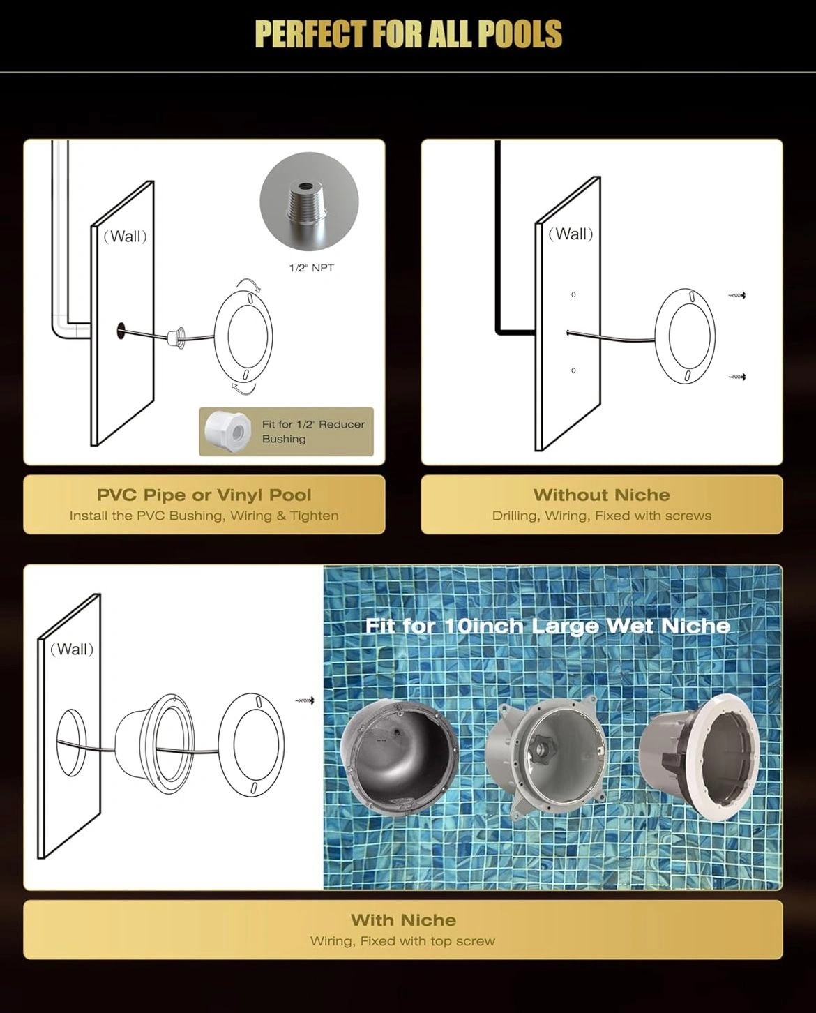 15Open box 10" 120W 12000LM RGB Pool Lights for Inground Pool Large Wet Niche, AC120V to DC12V, 50ft Cord, Underwater LED Lights with 1/2" NPT Thread, IP68 Swimming Pool Light.