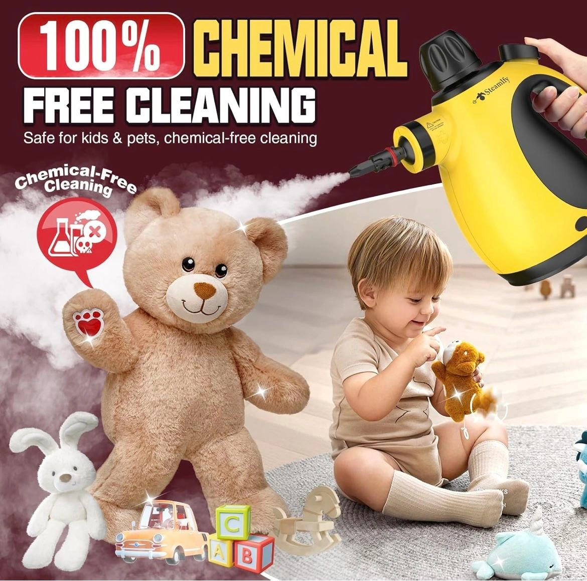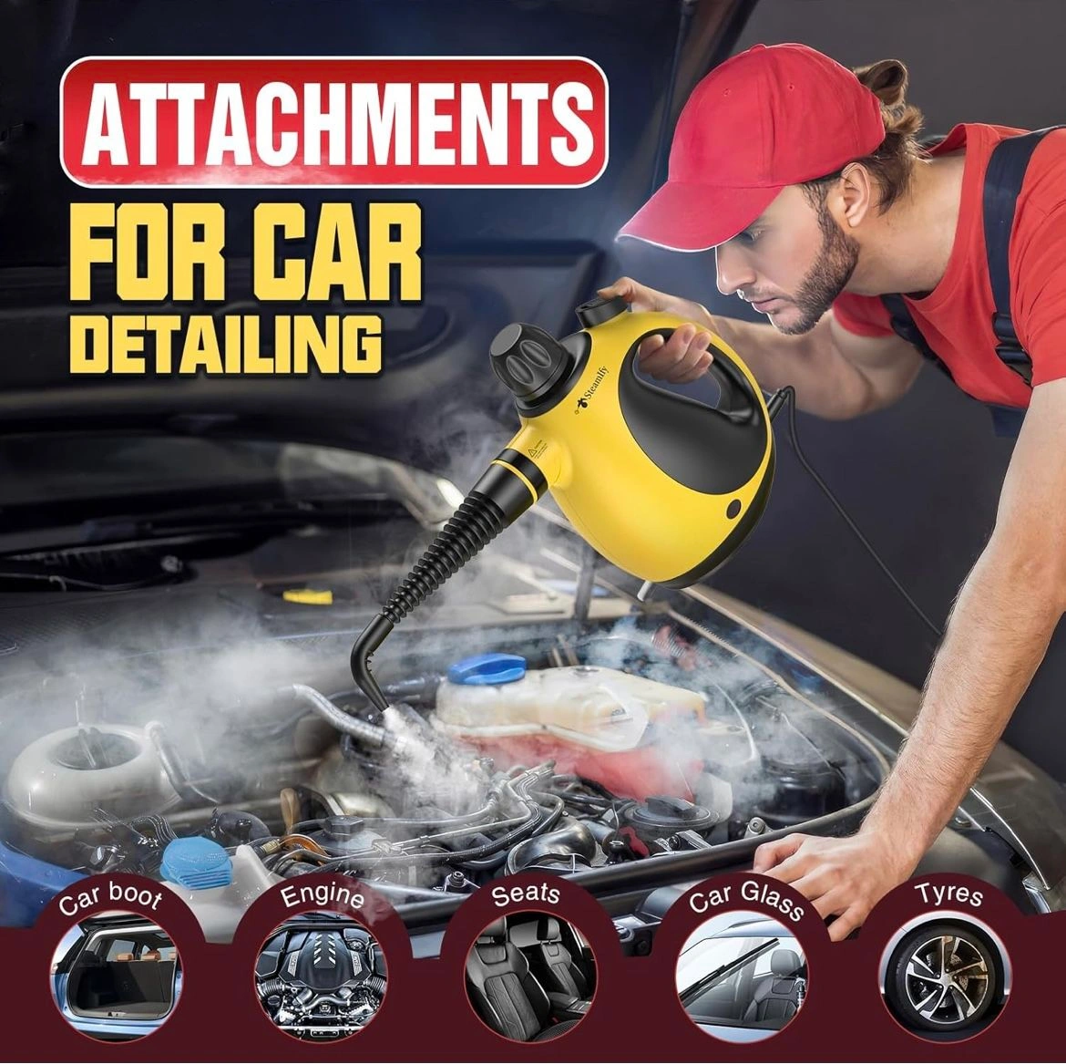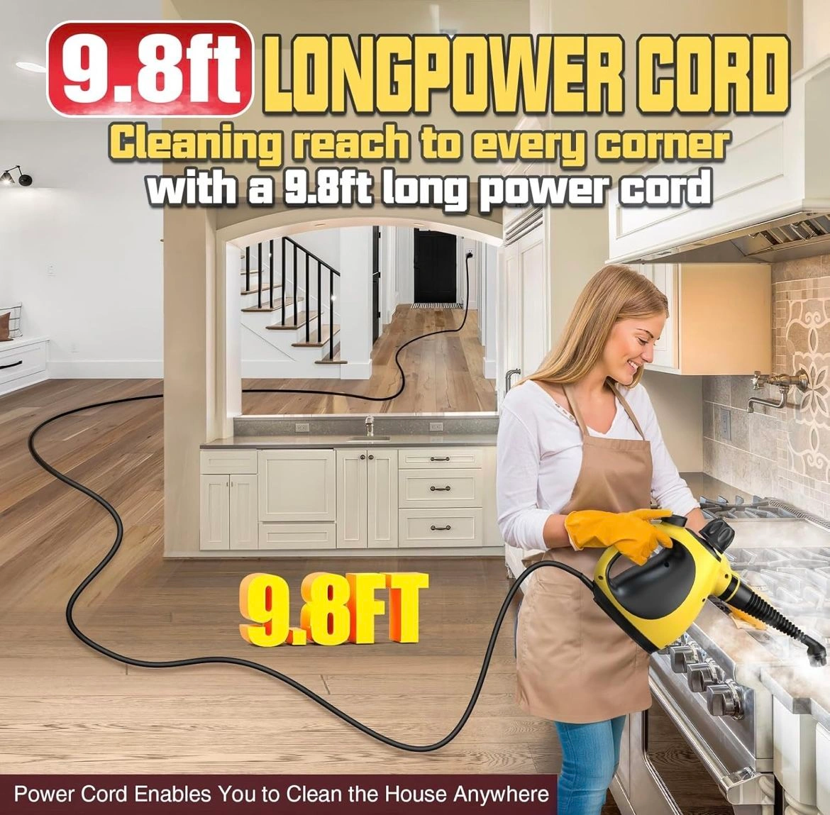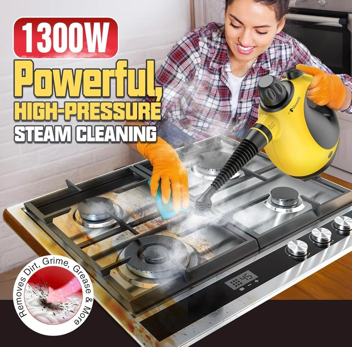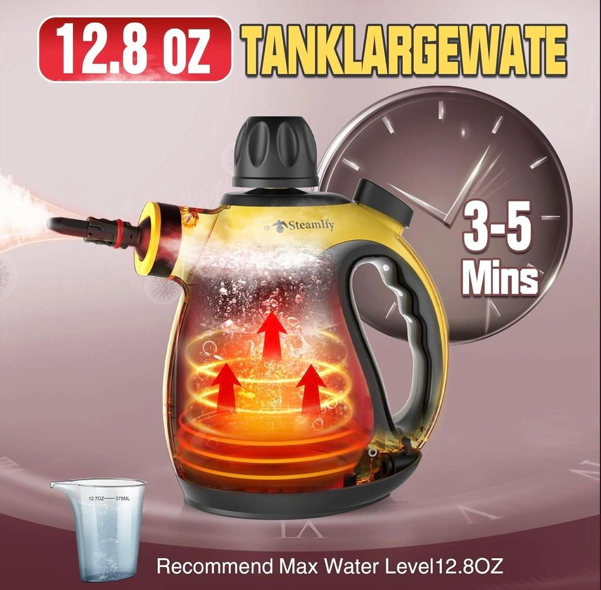 15Open box Multi-Surface Steamer with 12 Accessories, 12.8oz Natural Steamer for Cleaning Car, Bathroom, Shower, Upholstery, Grout, Window, Grease. 1200 watts of power, it heats up rapidly in just 3-5 minutes, delivering powerful pressurized steam at 230°F for up to 7-15 minutes.