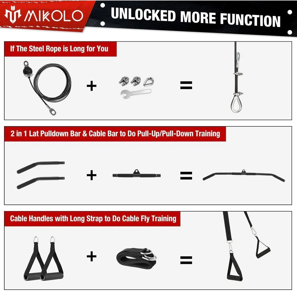 15Open box LAT Pulley Attachments with Adjustable Length Cable for Full Body Training, Home Gym Set.