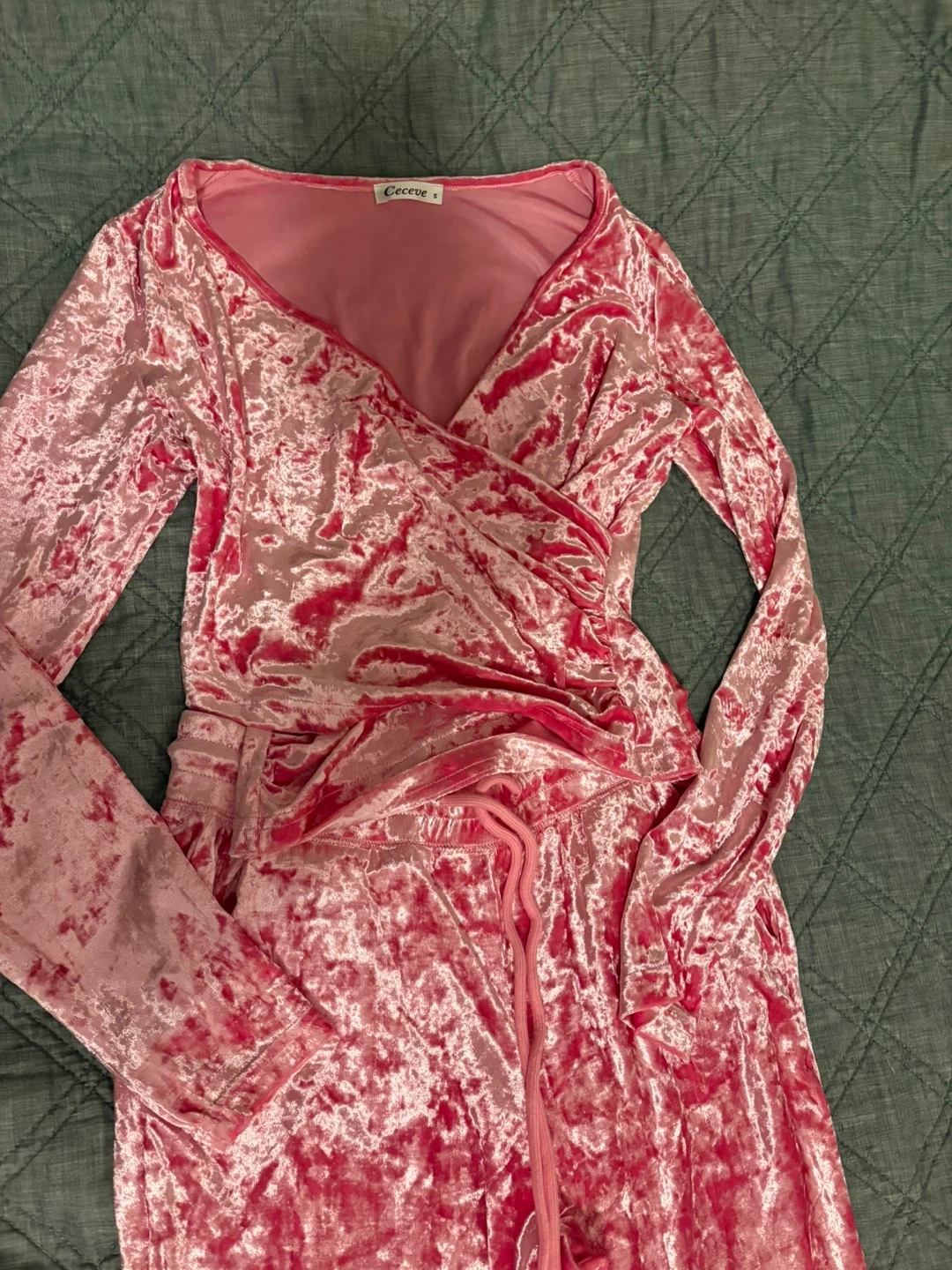 65Selling a Ceceve pink velvet lounge set in size small! It's a super cute and comfy outfit, perfect for lounging around the house or a casual day out. The material is soft and plush, making it a cozy choice for any season!
