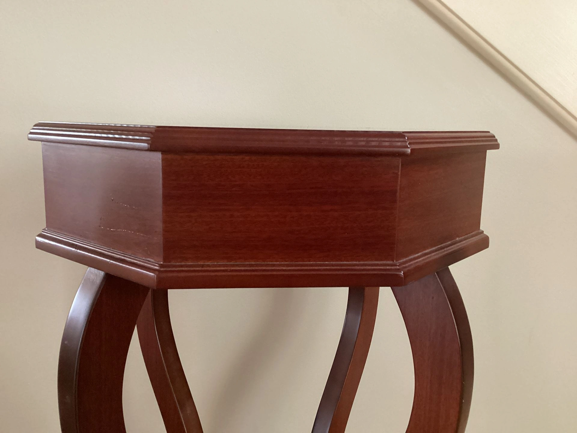 Buy & SellWooden Accent Side Table Octagon Shape For Home DecorWooden Accent Side Table Octagon Shape For Home Decor$4025” Tall ,15” Octagon length Good condition except the side area is slightly peeled off - see the last photo1 chats·1 favorites·14 viewsSELLEROliviaMundelein231 reviewWHERE TO MEETCheck Location