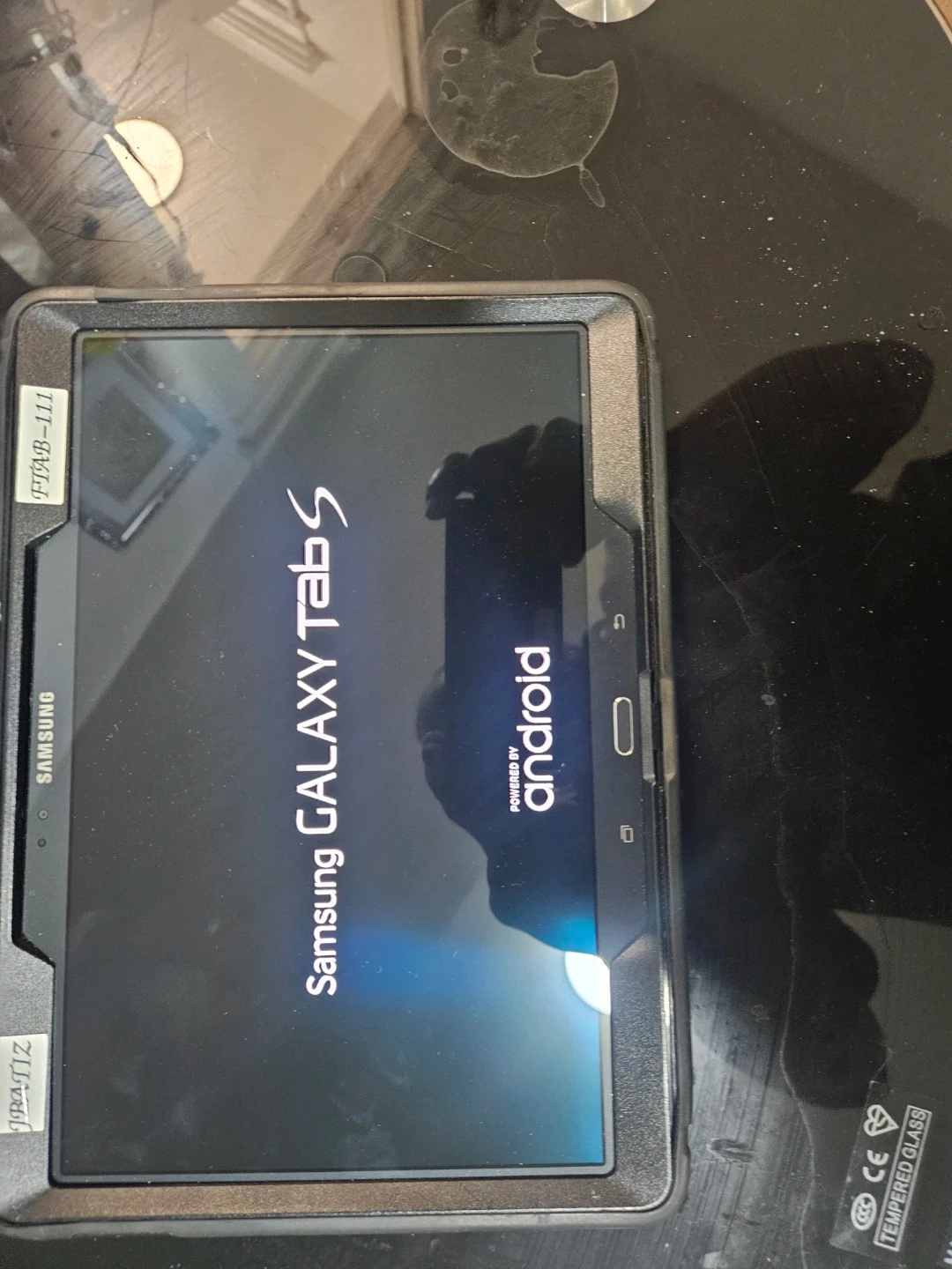 Selling a Samsung Galaxy Tab S tablet. It appears to be in good condition and includes a protective case. Great for browsing, reading, and entertainment!
