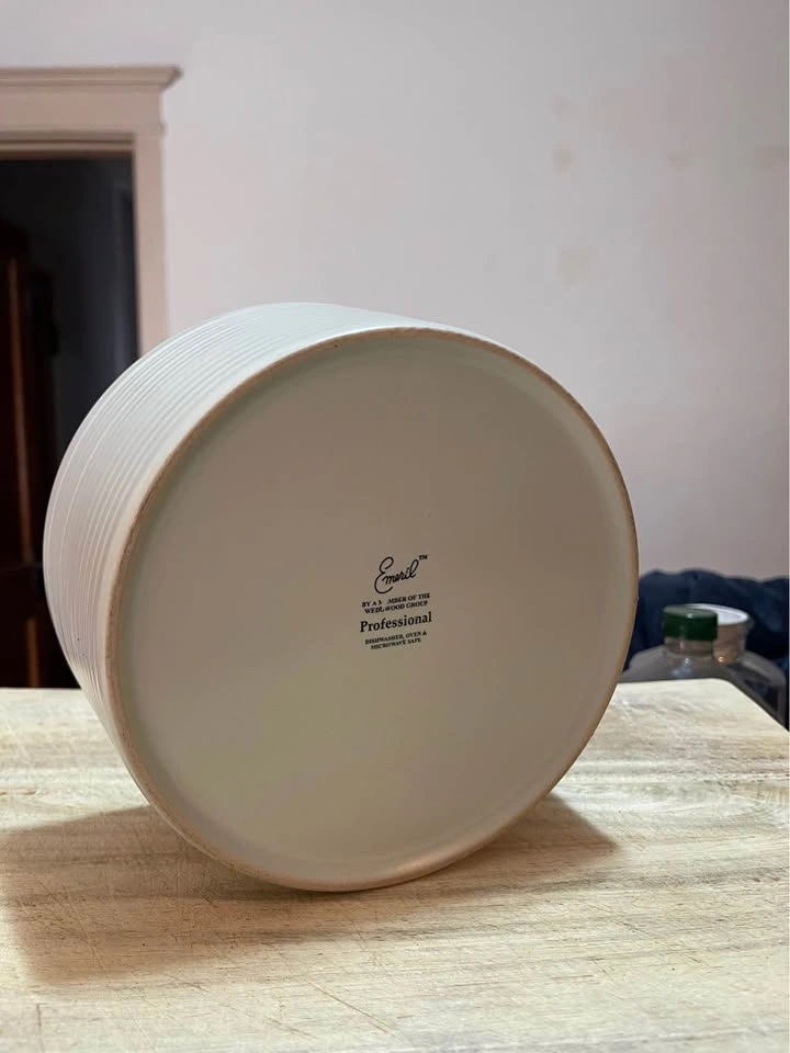 Excellent condition - like new! Oven & Dishwasher safe Professional 8” Mixing/serving/baking bowl Measurements: 8” diameter X 4” tall Linen white / light gray