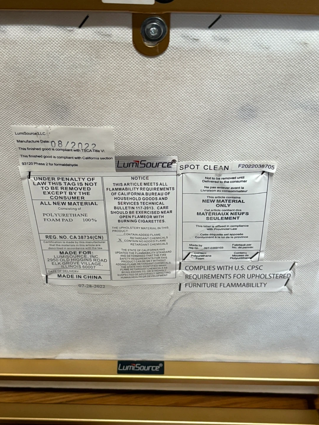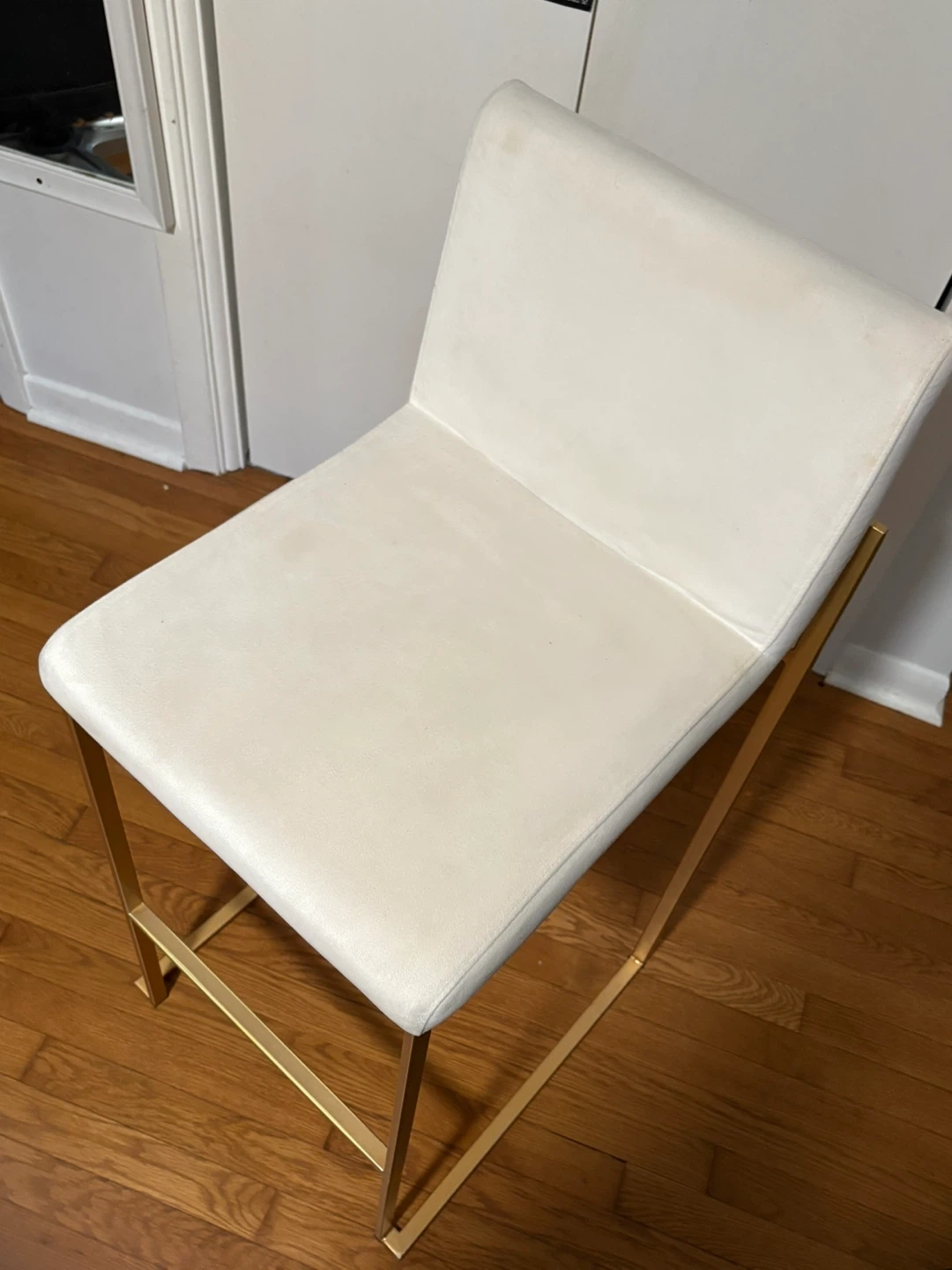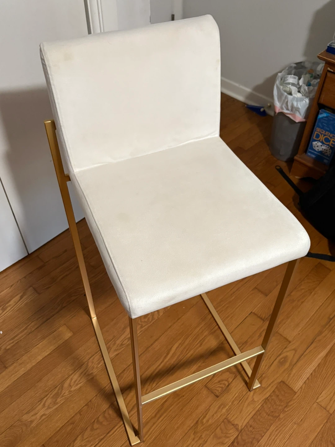 Selling a Lumiosource bar stool with a sleek design! It features a white seat and gold-colored legs, making it a stylish addition to any kitchen or bar area. The stool is made with polyurethane foam and is compliant with U.S. CPSC requirements for upholstered furniture flammability. It's in a ok condition and ready for a new home! Two chairs