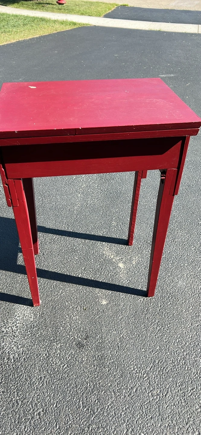 Buy & SellRed Wooden Sewing TableRed Wooden Sewing Table$5Here's a charming red wooden sewing table! It has a unique design with a fold-out top and a cutout for a sewing machine. Perfect for adding a touch of vintage flair to your crafting space.ConditionOkay0 chats·1 favorites·10 viewsSELLERverifiedAmandaChurchill600 reviewsWHERE TO MEET165 Bluegrass Pkwy