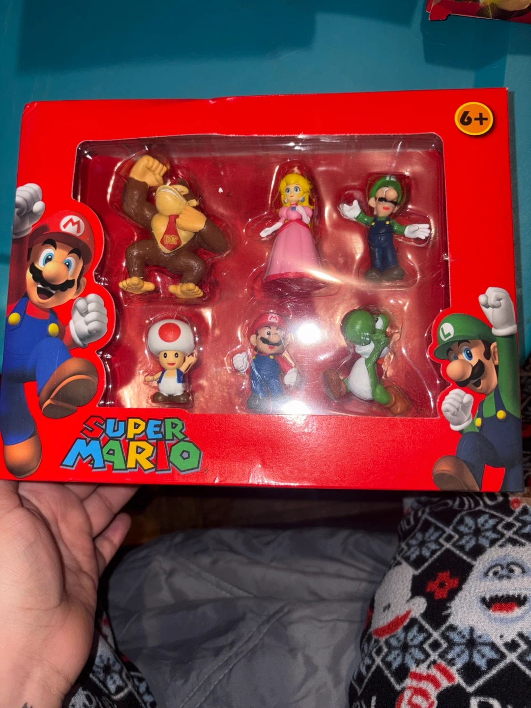 Selling a set of Super Mario figurines! The packaging indicates it's suitable for ages 6 and up. Includes Mario, Luigi, Princess Peach, Yoshi, Donkey Kong, and Toad. Great for any Nintendo fan!