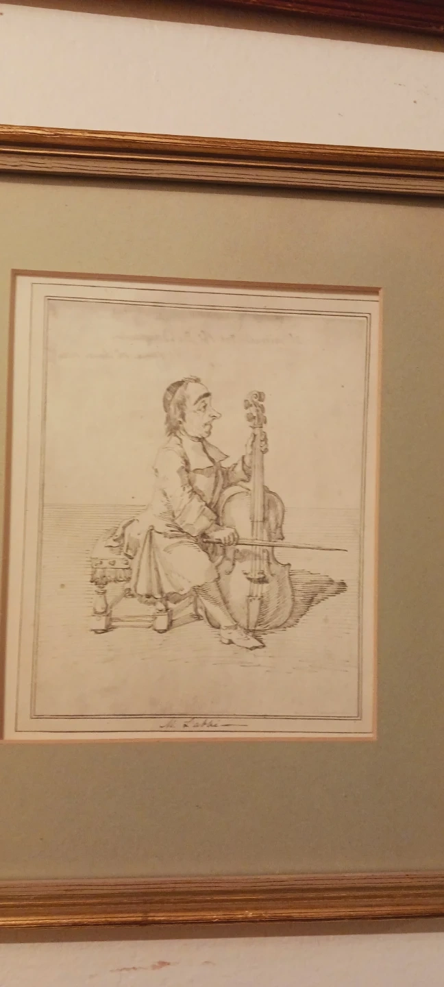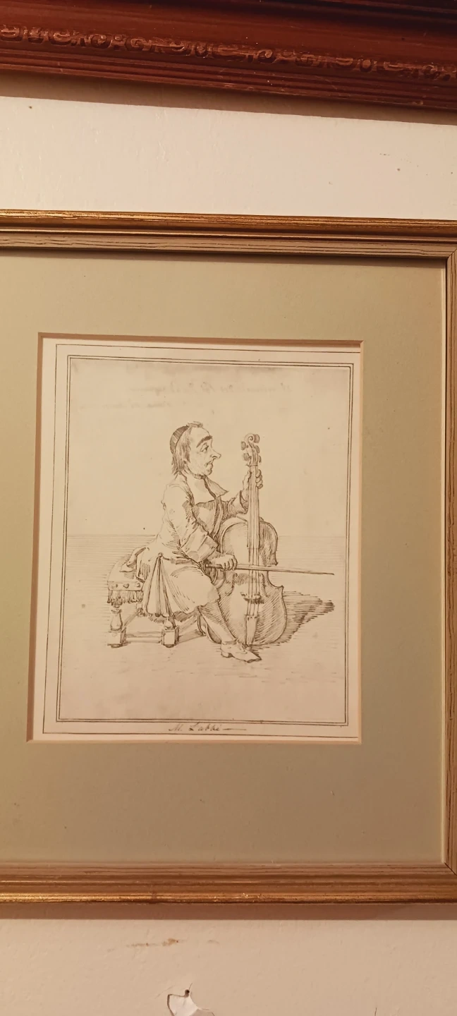 1000+This is a framed etching featuring a man playing a cello. The frame is a dark wood with gold trim. It would be a great addition to any art collection!!! 11"×9"..Good condition. ALL MY PRICES ARE NEGOTIABLE !!