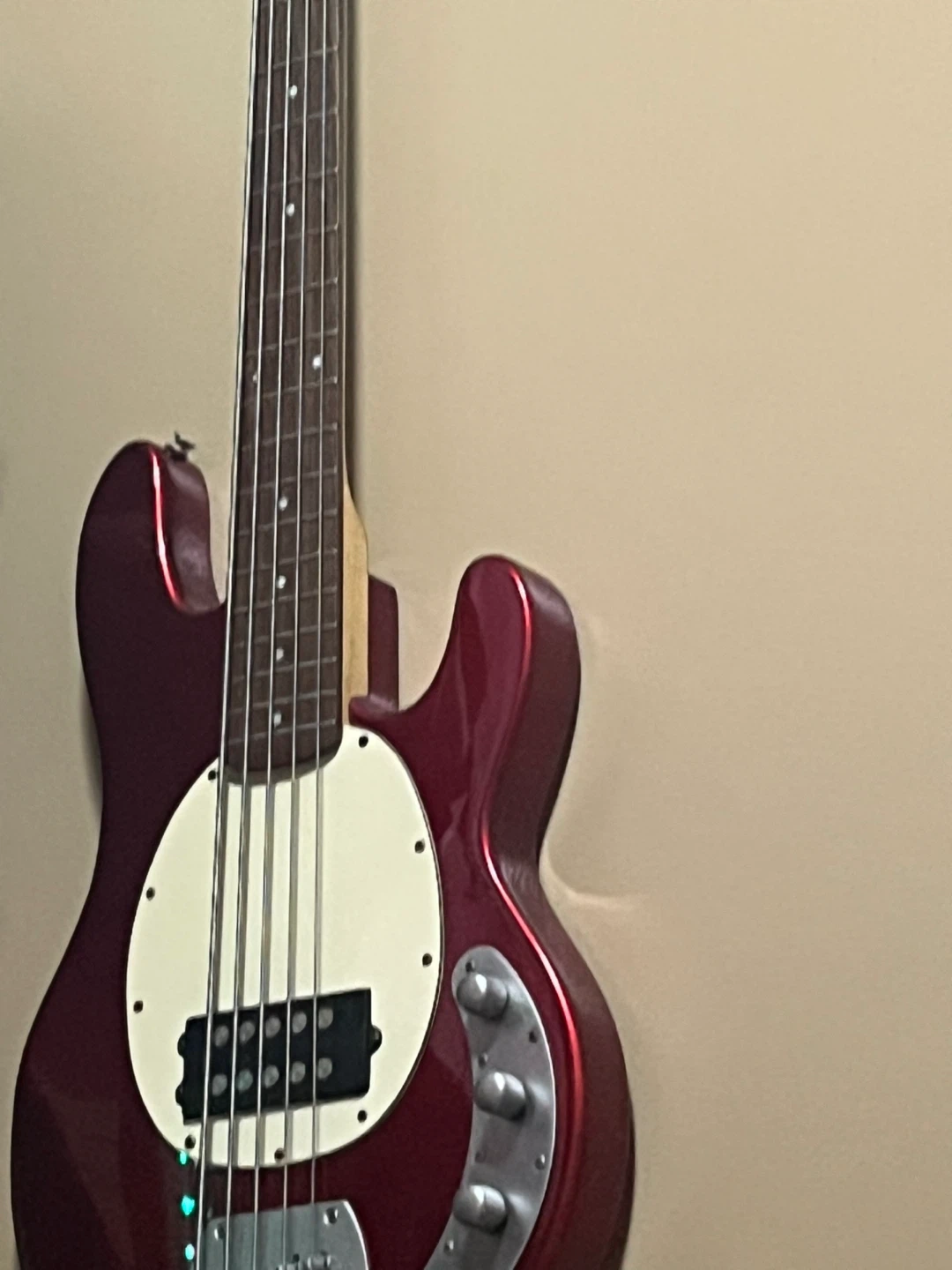 Selling a Jay Turser 5-string bass guitar in a lovely red color. It's in good condition and ready for a new owner to enjoy playing. Perfect for anyone looking to upgrade their current bass or start learning!