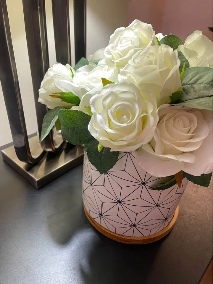 Elegant and timeless β this faux white rose arrangement adds a soft touch of beauty to any space without the upkeep.