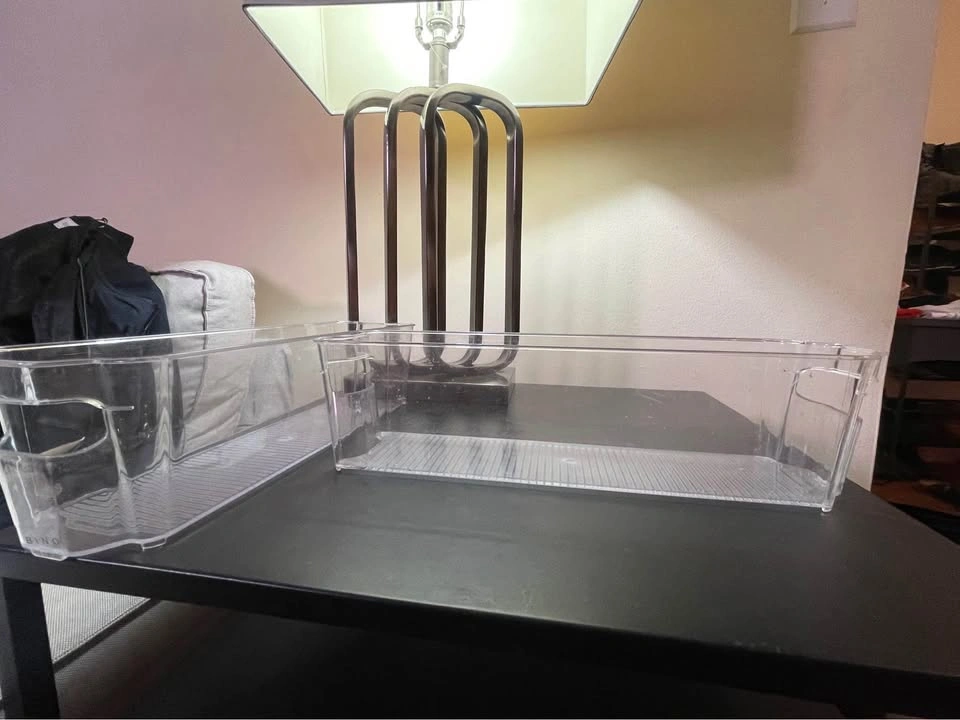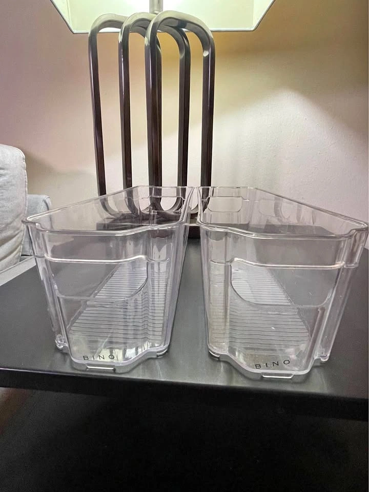 Set of two BINO brand clear plastic organizers β great for the fridge, freezer, pantry, or cabinets.