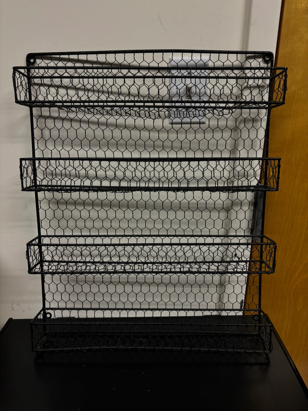 Buy & SellBlack Metal Wire Spice Rack RackBlack Metal Wire Spice Rack Rack$5This is a black metal wire wall spice rack! I’ve had it for a few years but don’t need it anymore in my new place.ConditionGood1 chats·0 favorites·35 viewsSELLERDillAstoria211 reviewWHERE TO MEETCheck Location