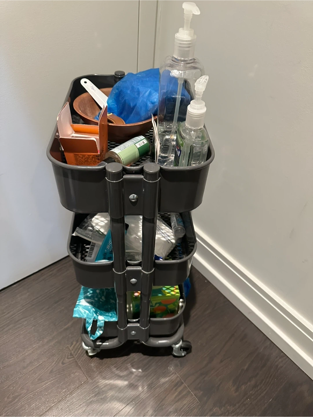 I'm selling a rolling utility cart. It's in almost new condition and ready to help organize your space! Perfect for the kitchen, bathroom, or any room needing extra storage