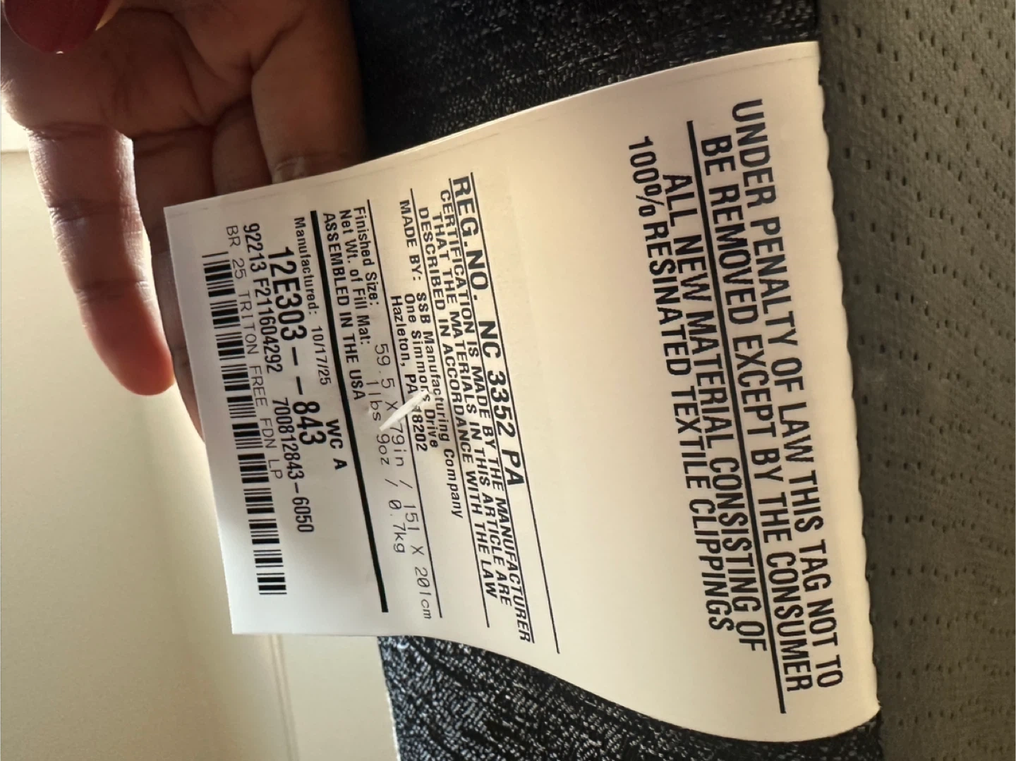 Got at Macy’s on 28 October. Selling because it made my bed too high - brand new, never used.
